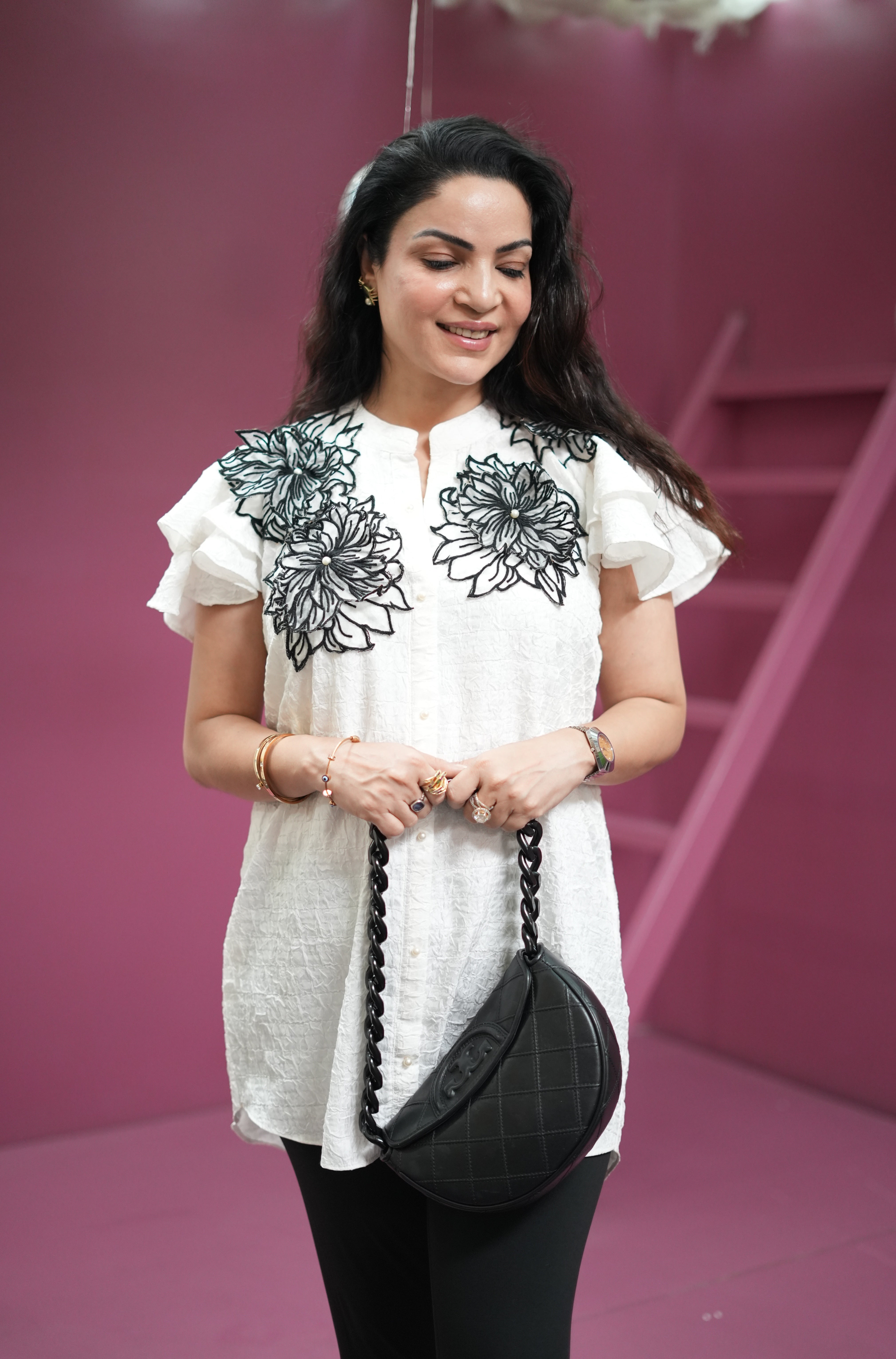 No. of components - 1 Shirt , Fabric - cotton, Color - white, work - Handwork, Fit - According to measurements