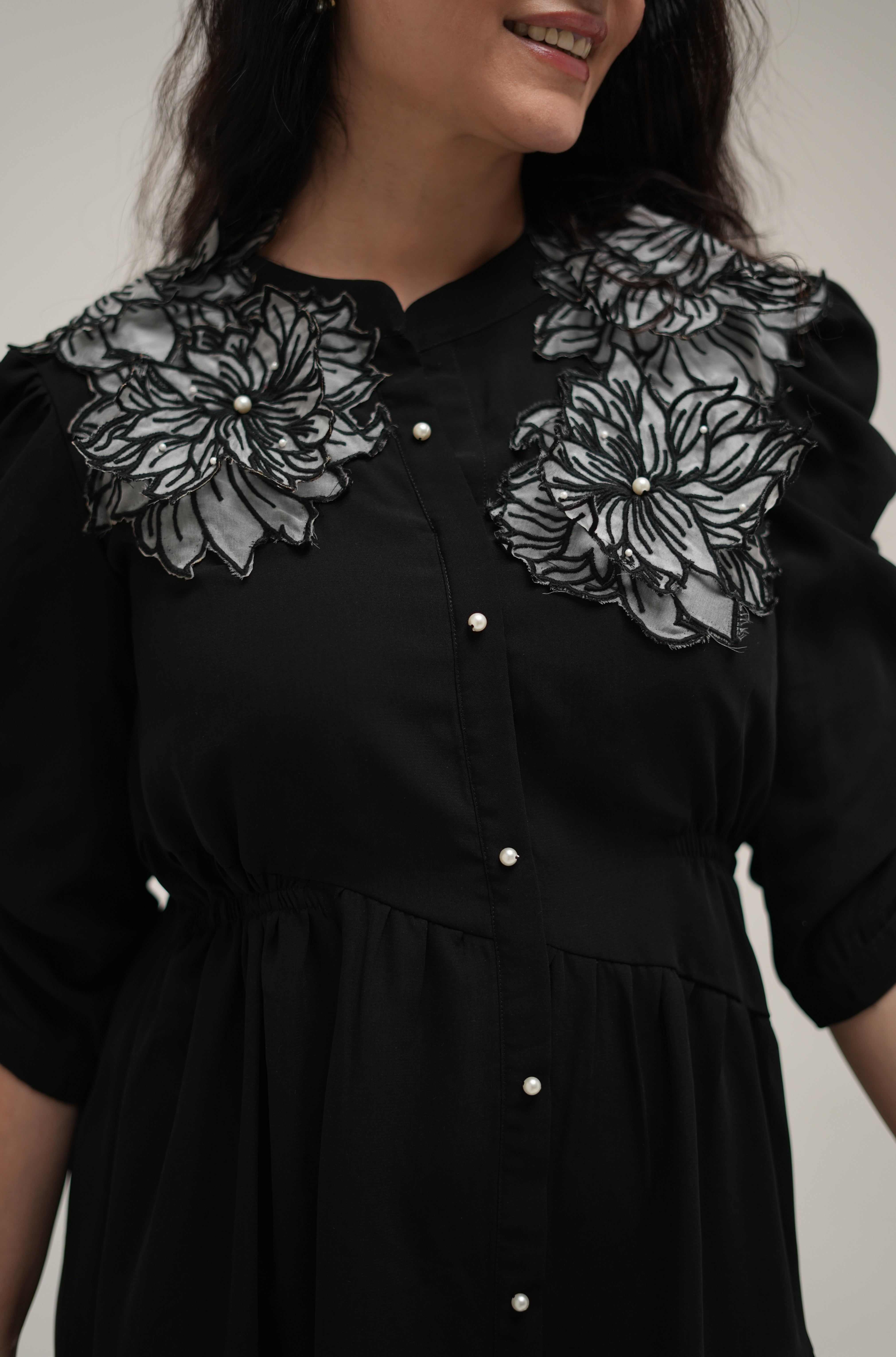 No. of components - 1 Dress , Fabric - georgette , Color - black, work - Handwork, Fit - According to measurements