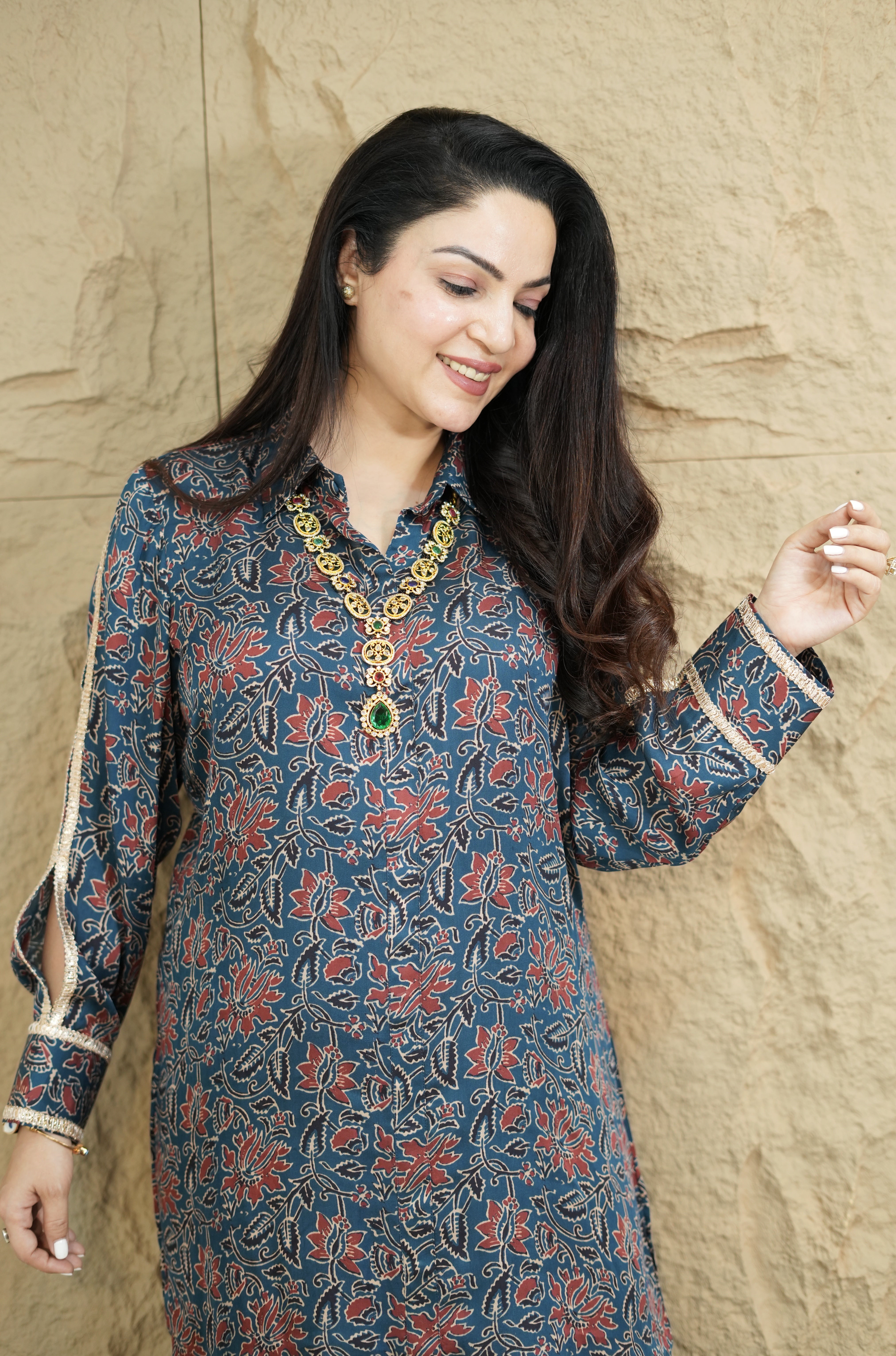 No. of components - 2 : kurta & dhoti salwar, Fabric - crepe , Color - blue & maroon, Fit - According to measurements
