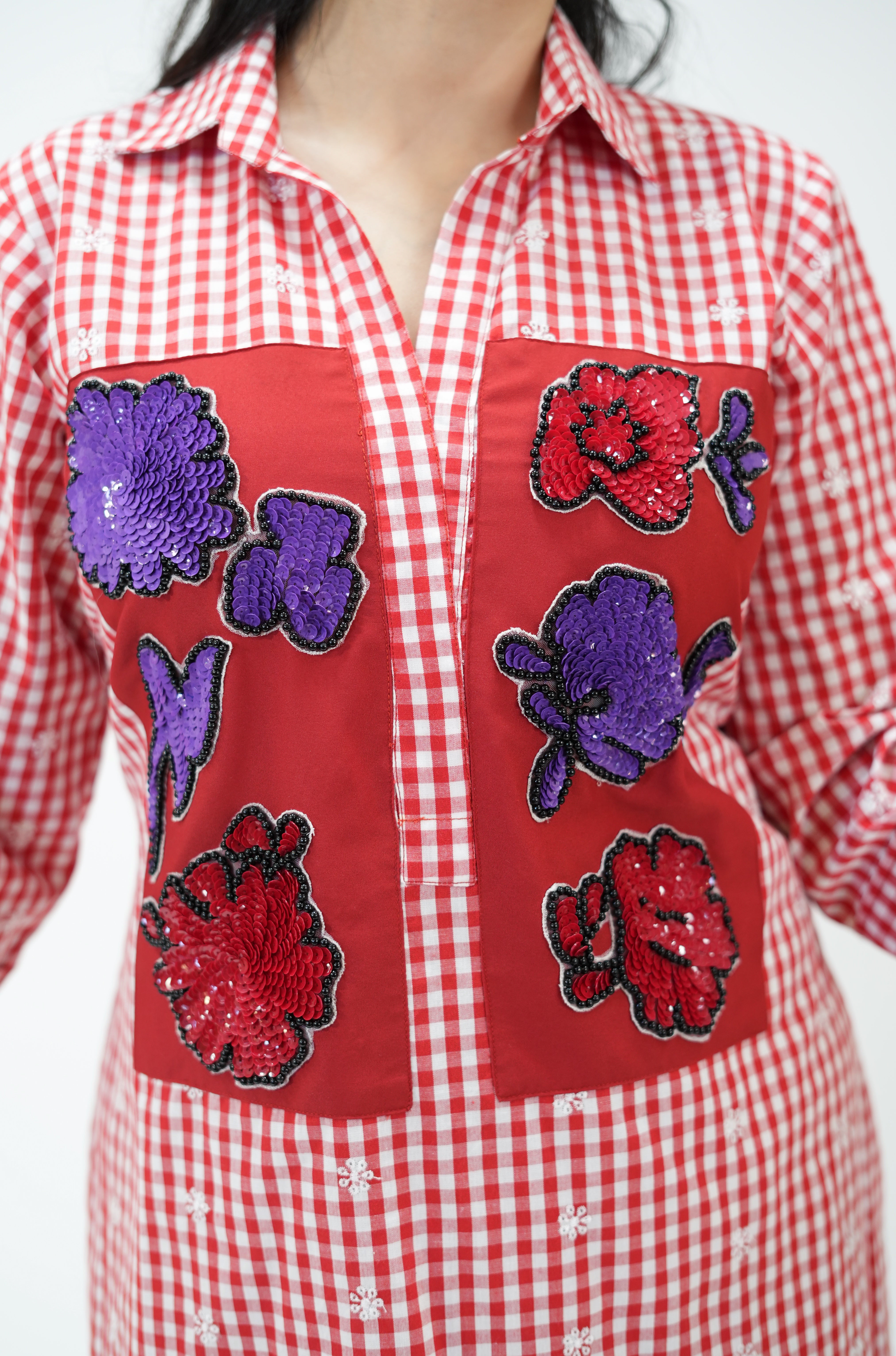 No. of components - 1 Dress , Fabric - cotton, colour- white & blue, work - handwork, Fit - According to measurements