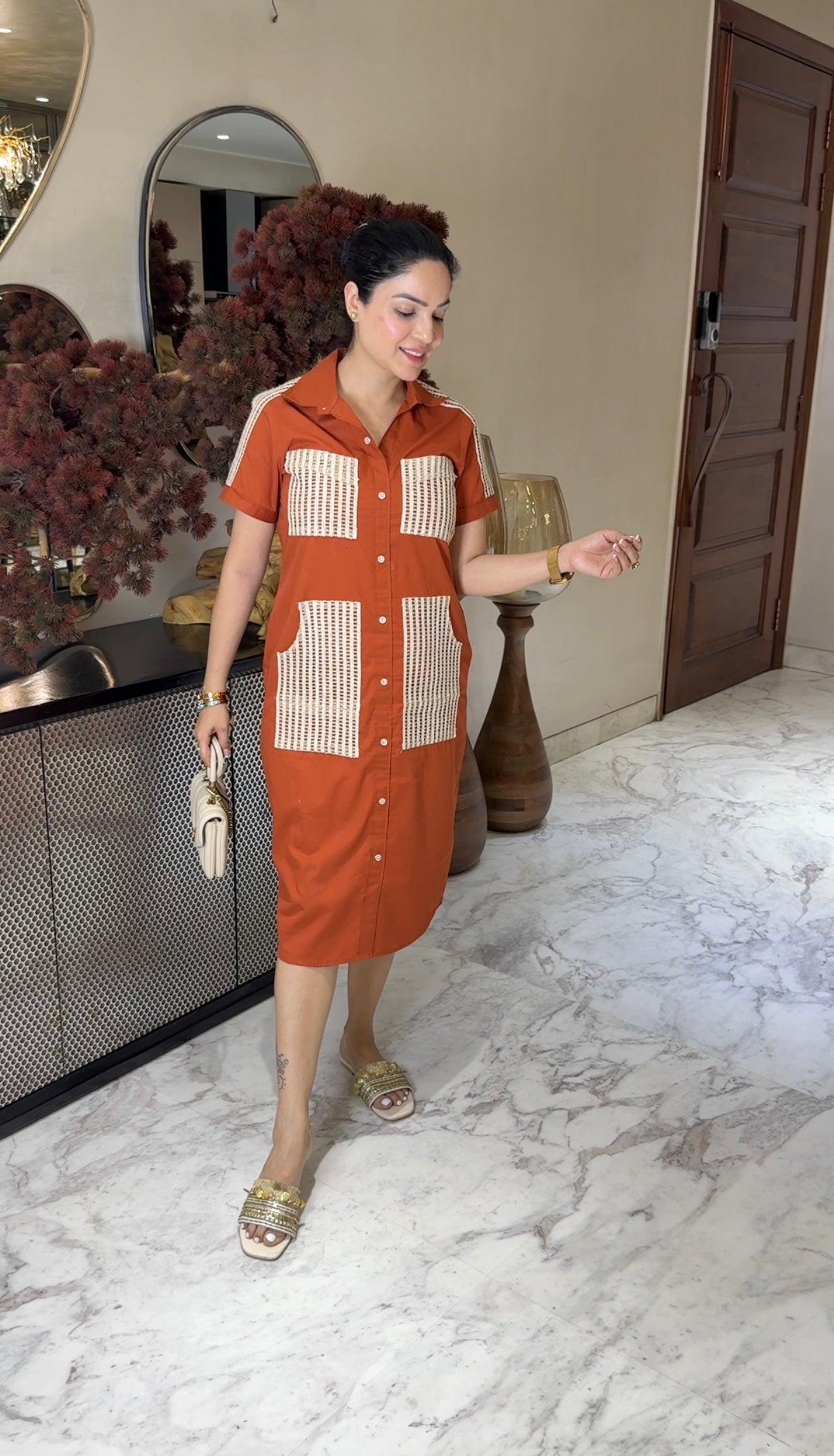 No. of components - 1 Dress , Fabric - cotton, colour- Rust, work - boho lace , Fit - According to measurements