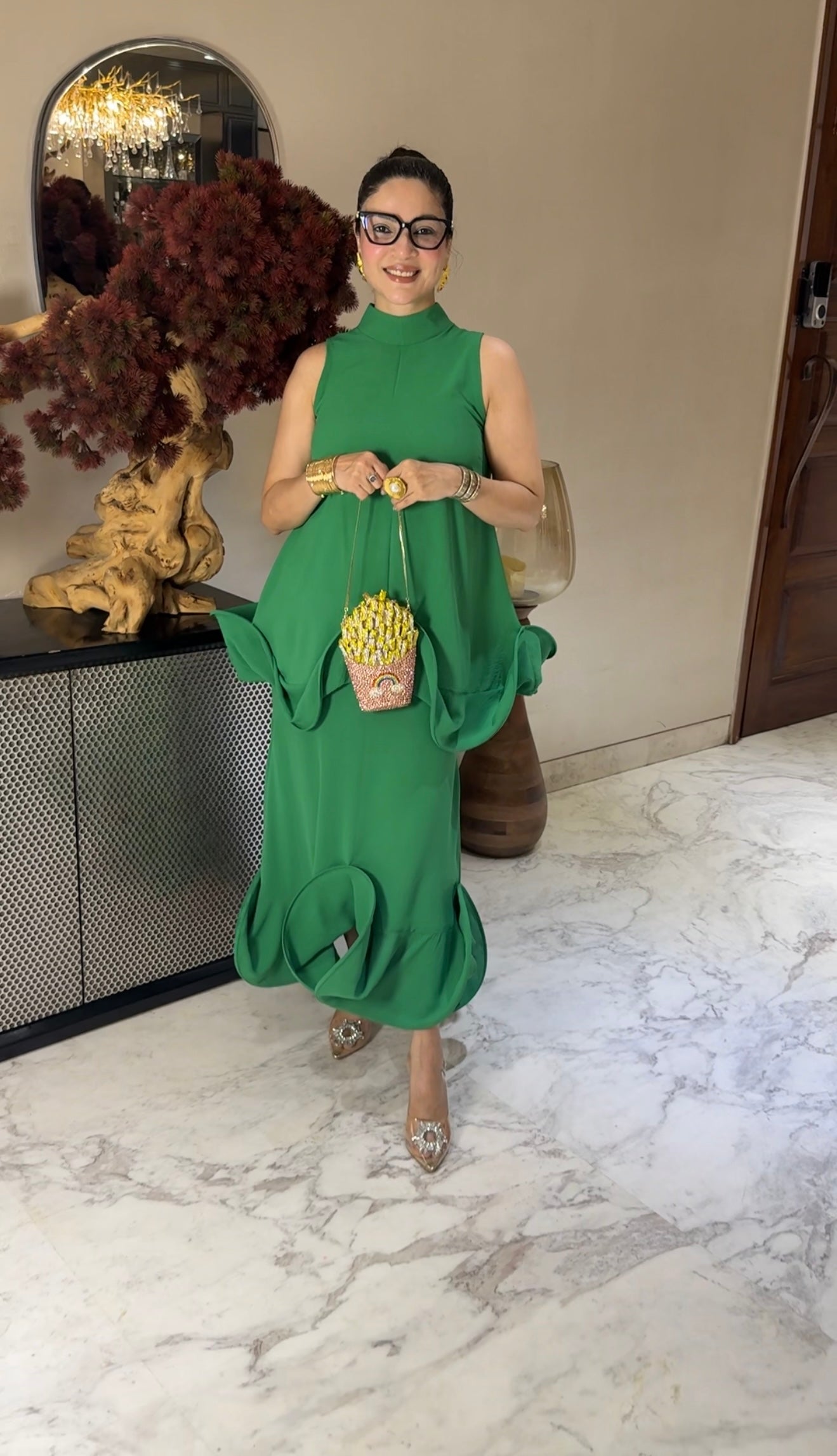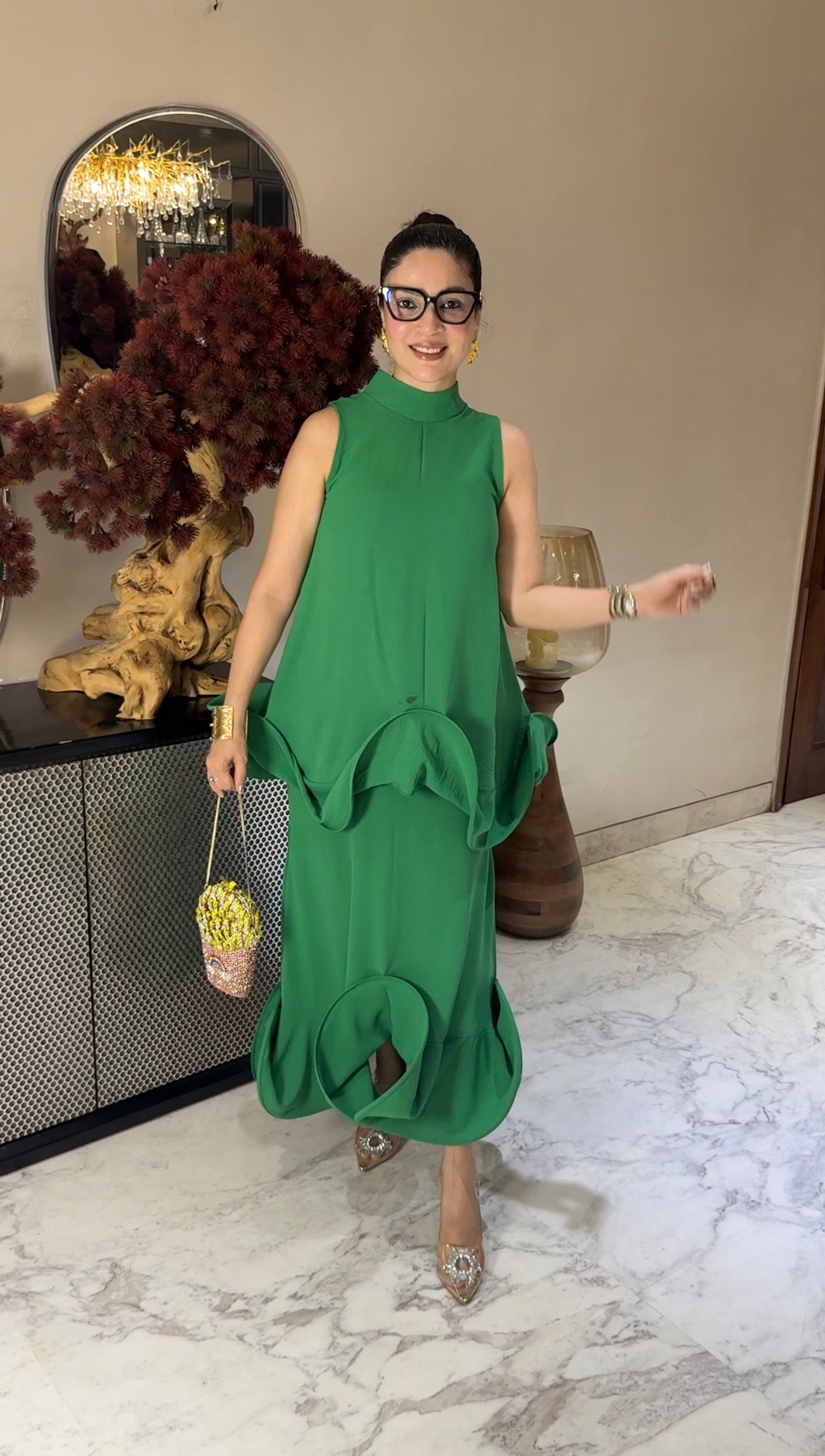 No. of components - 2: top and skirt, Fabric - cotton Lycra , Color - emrald green, Fit - According to measurements