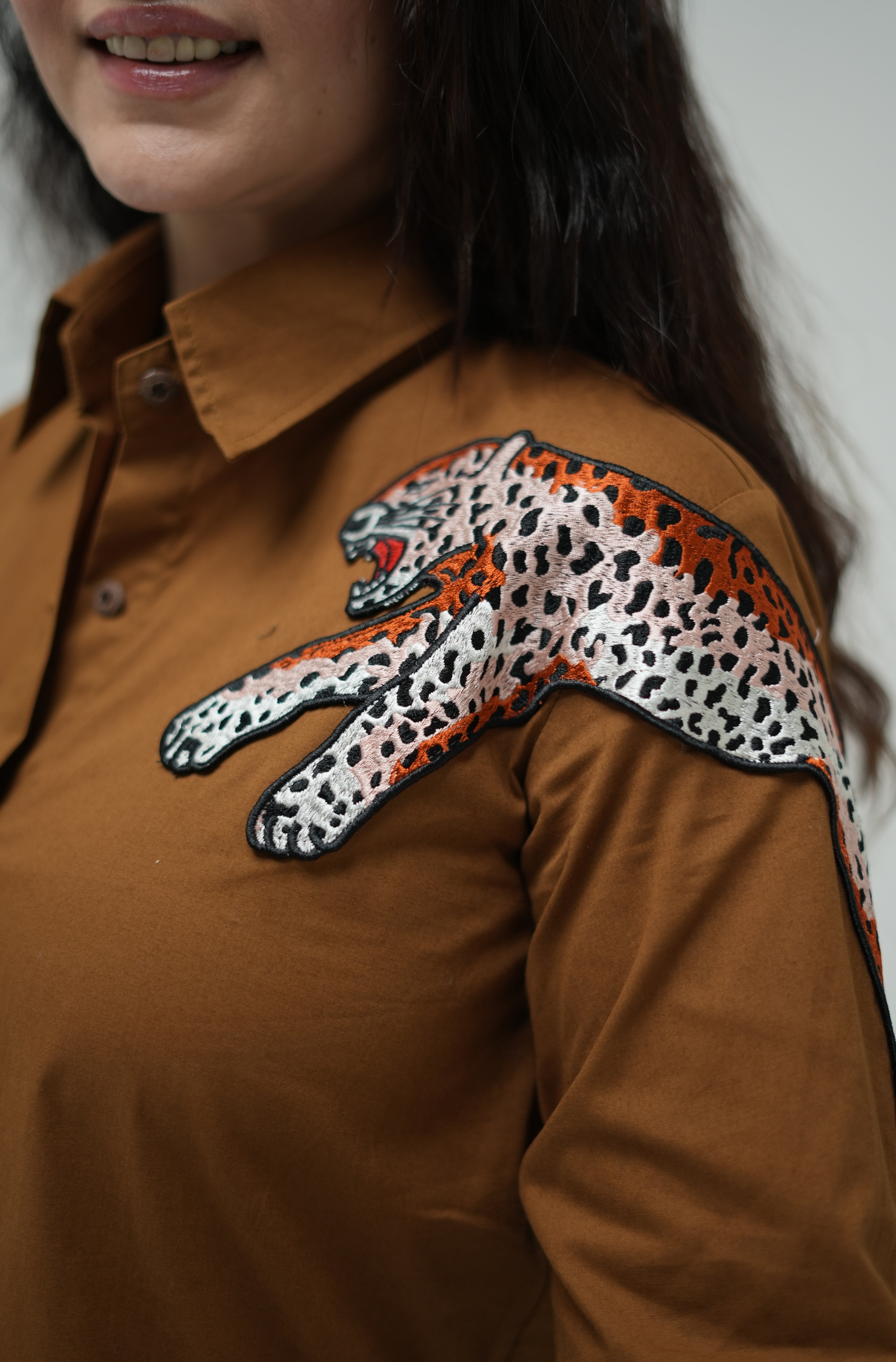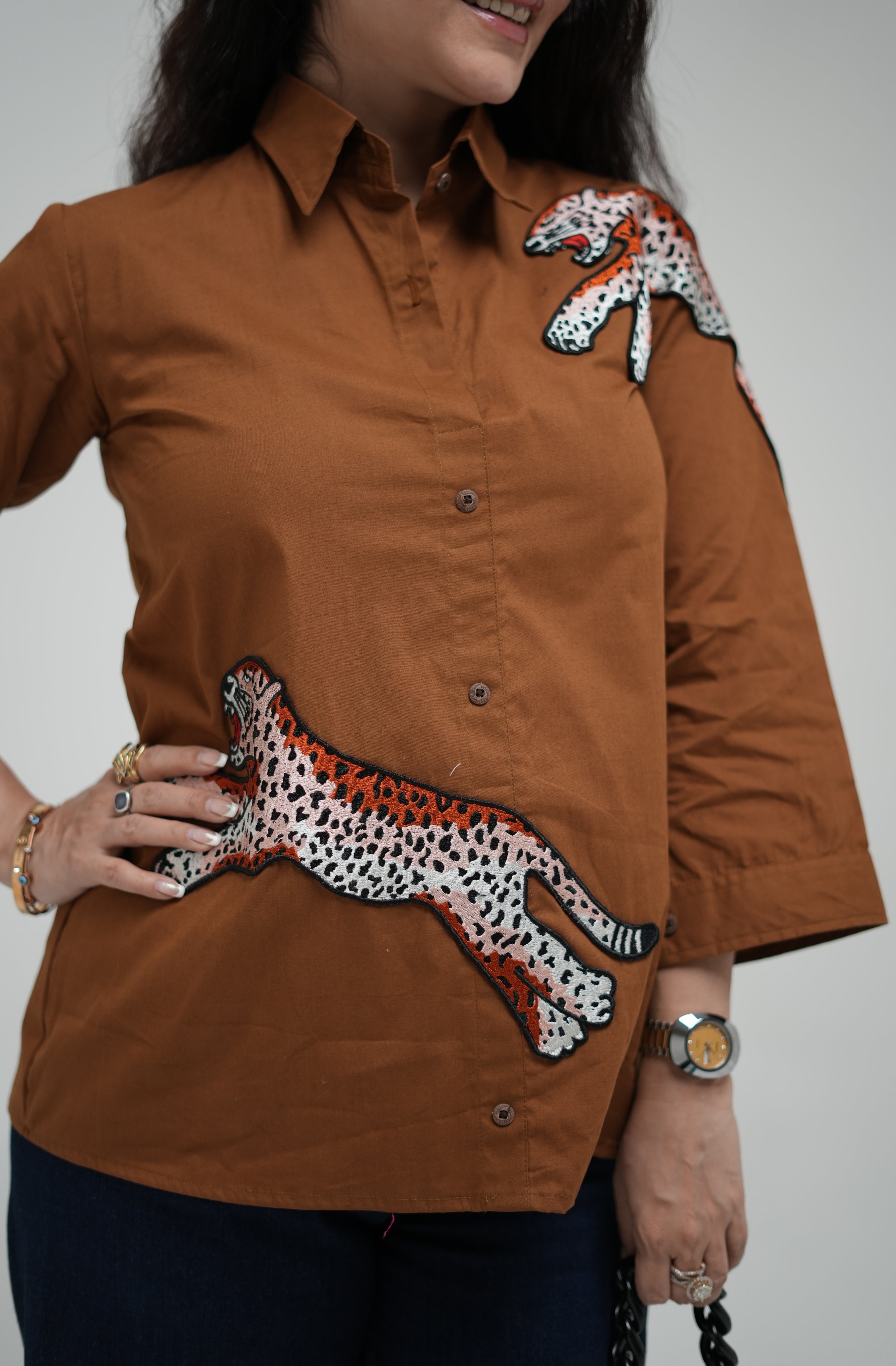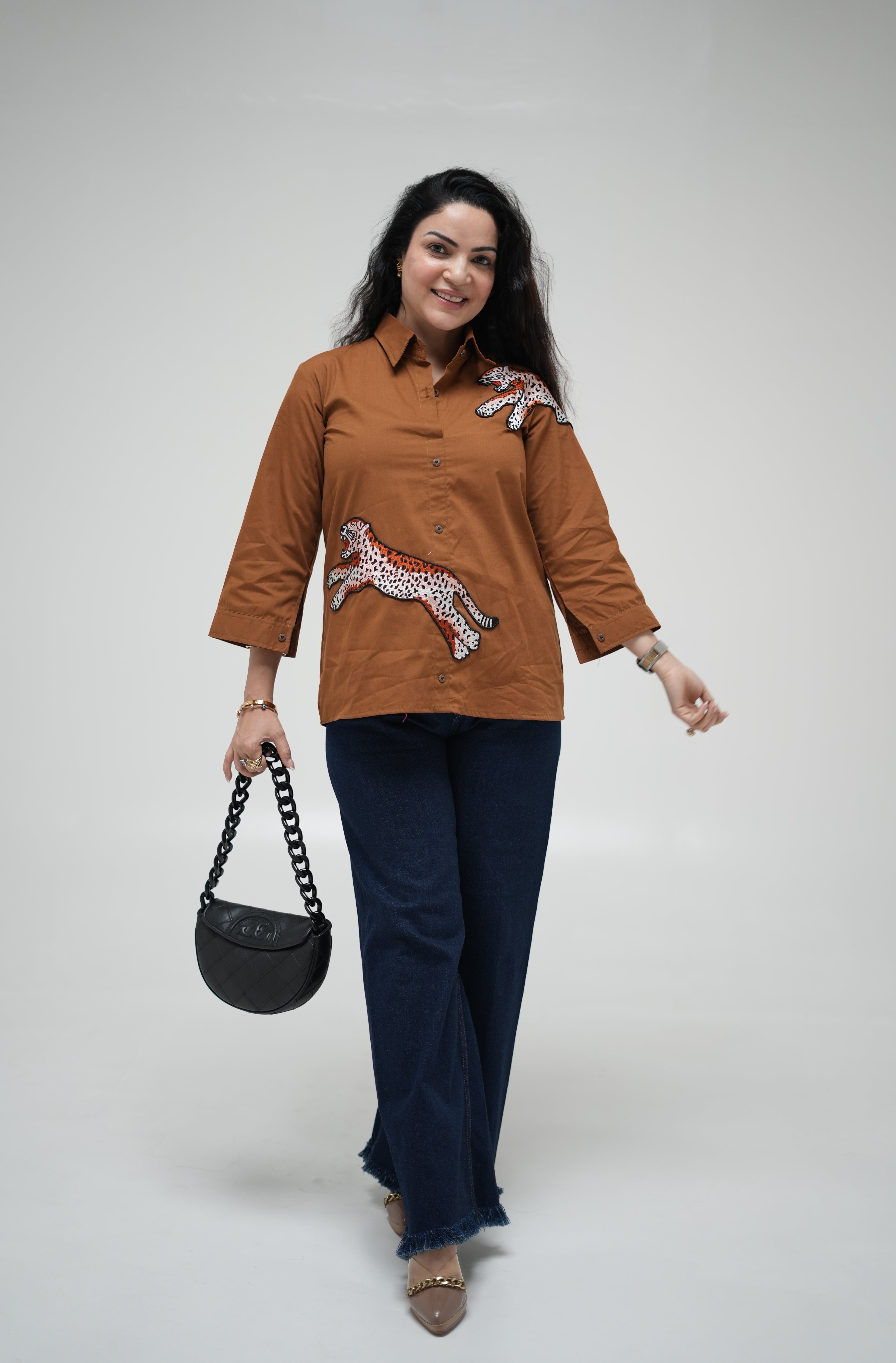No. of components - 1 Shirt , Fabric - cotton, Color - brown, work - machine work, Fit - According to measurements