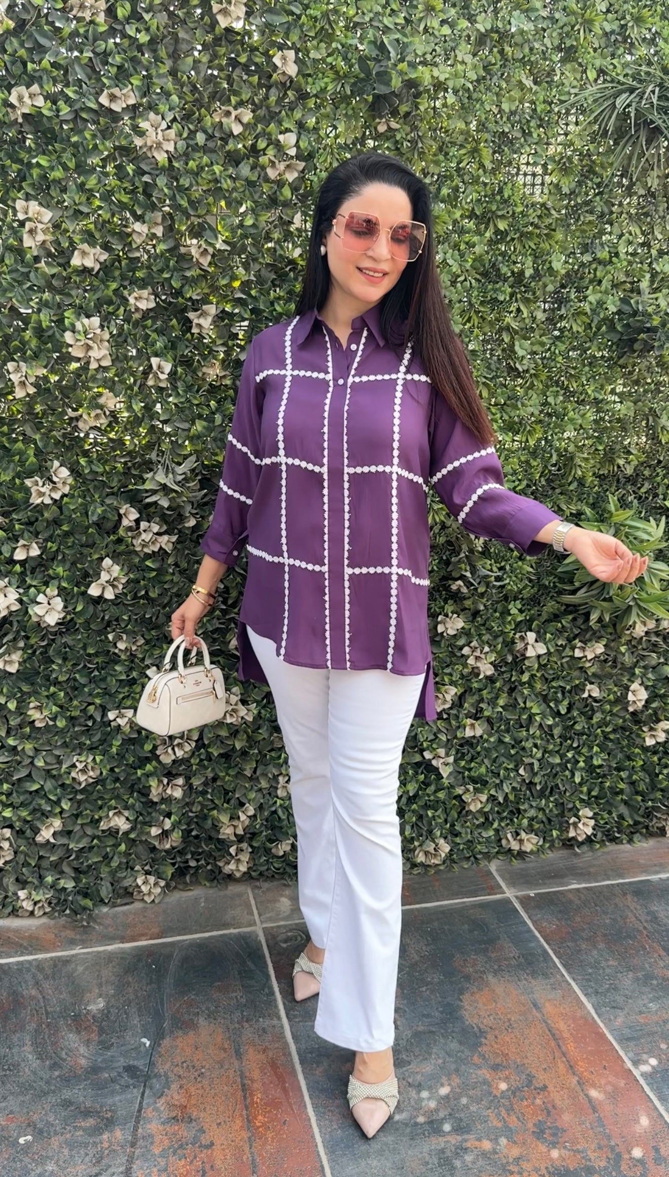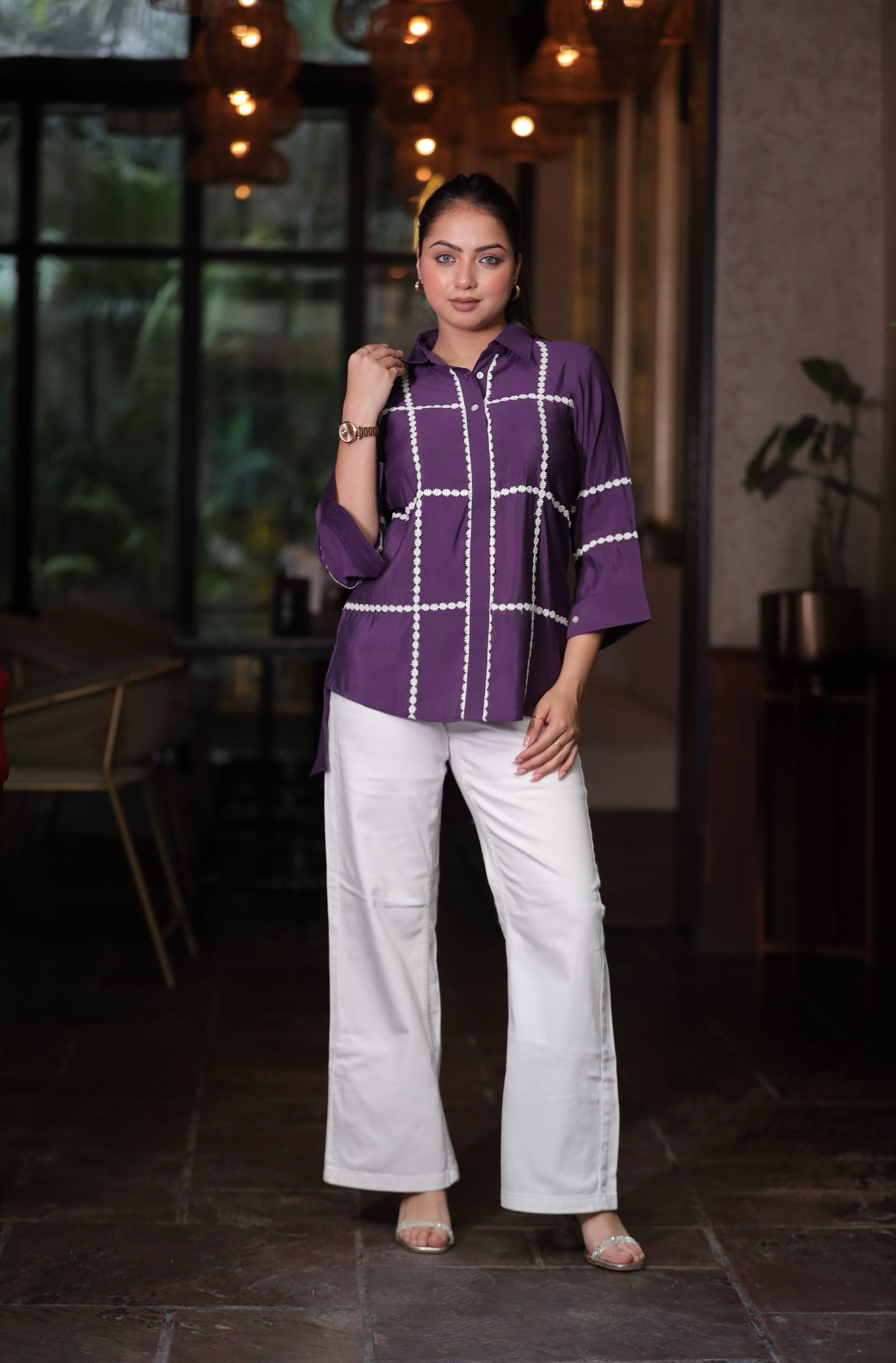 No. of components - 1 Shirt , Fabric - Cotton , Color - purple , work - Croatia lace, Fit - According to measurements