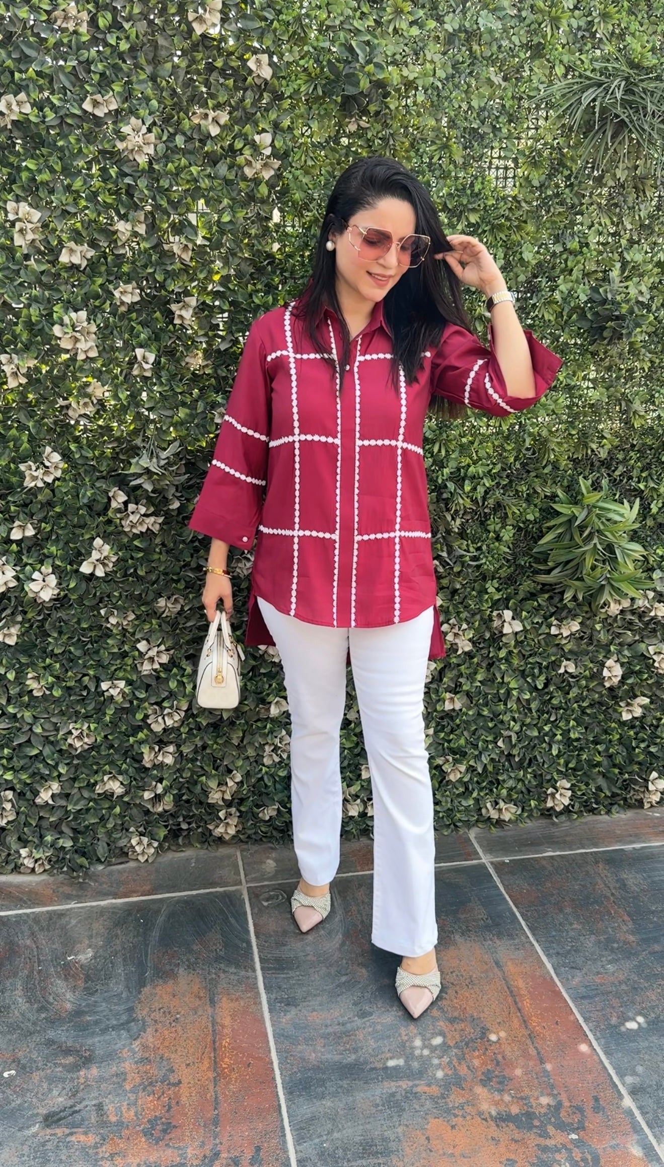 No. of components - 1 Shirt , Fabric - Cotton , Color - cherry pink , work - Croatia lace work , Fit - According to measurements