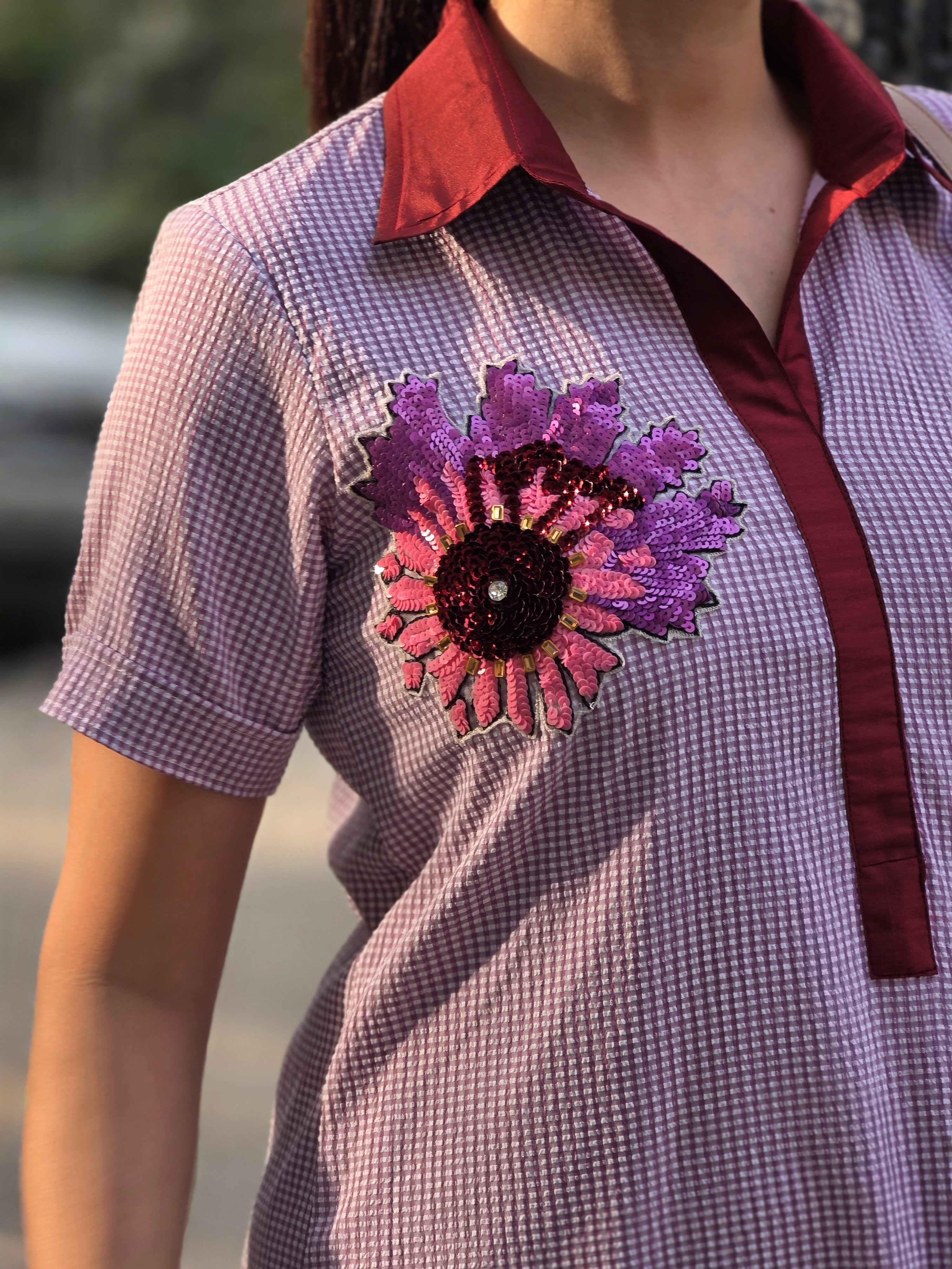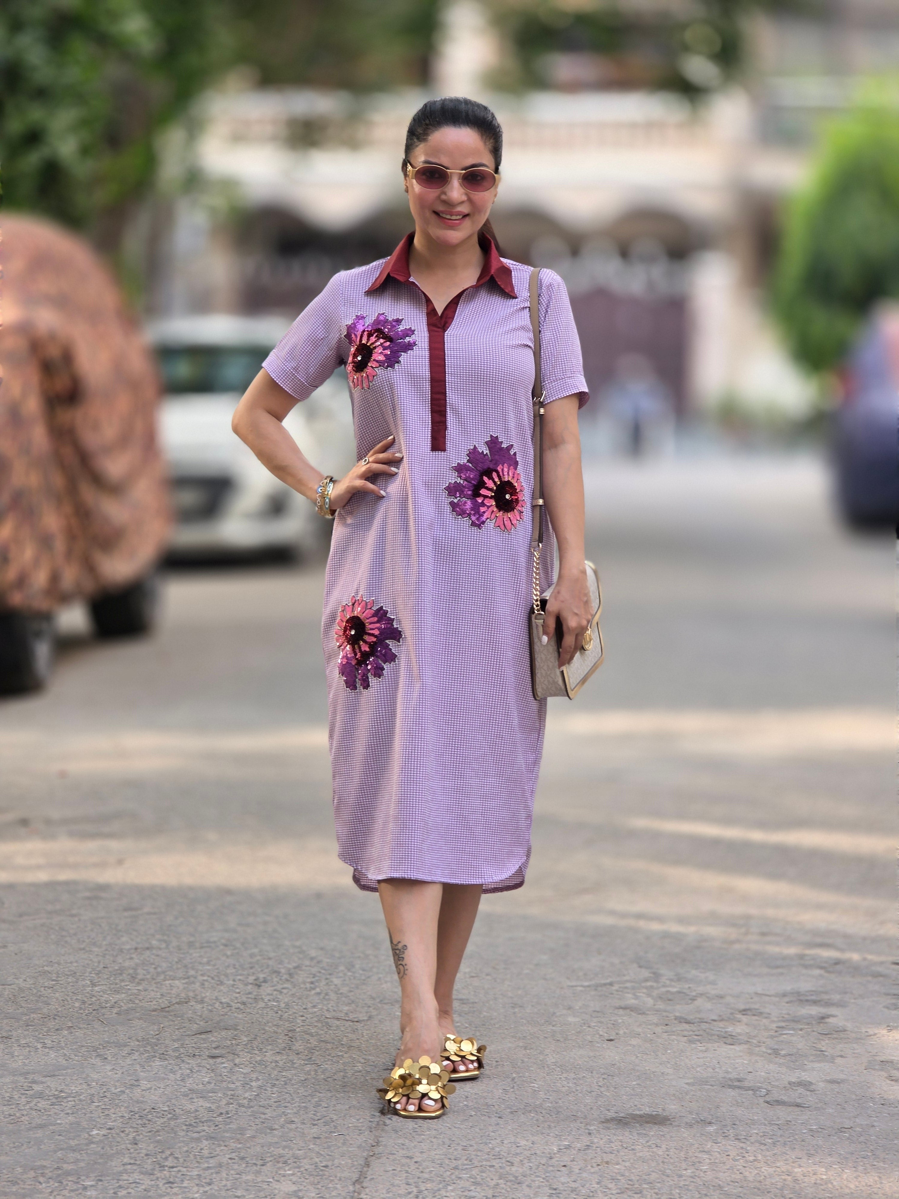 No. of components - 1 Dress , Fabric - cotton crush, colour- lavendar, work - handwork, Fit - According to measurements