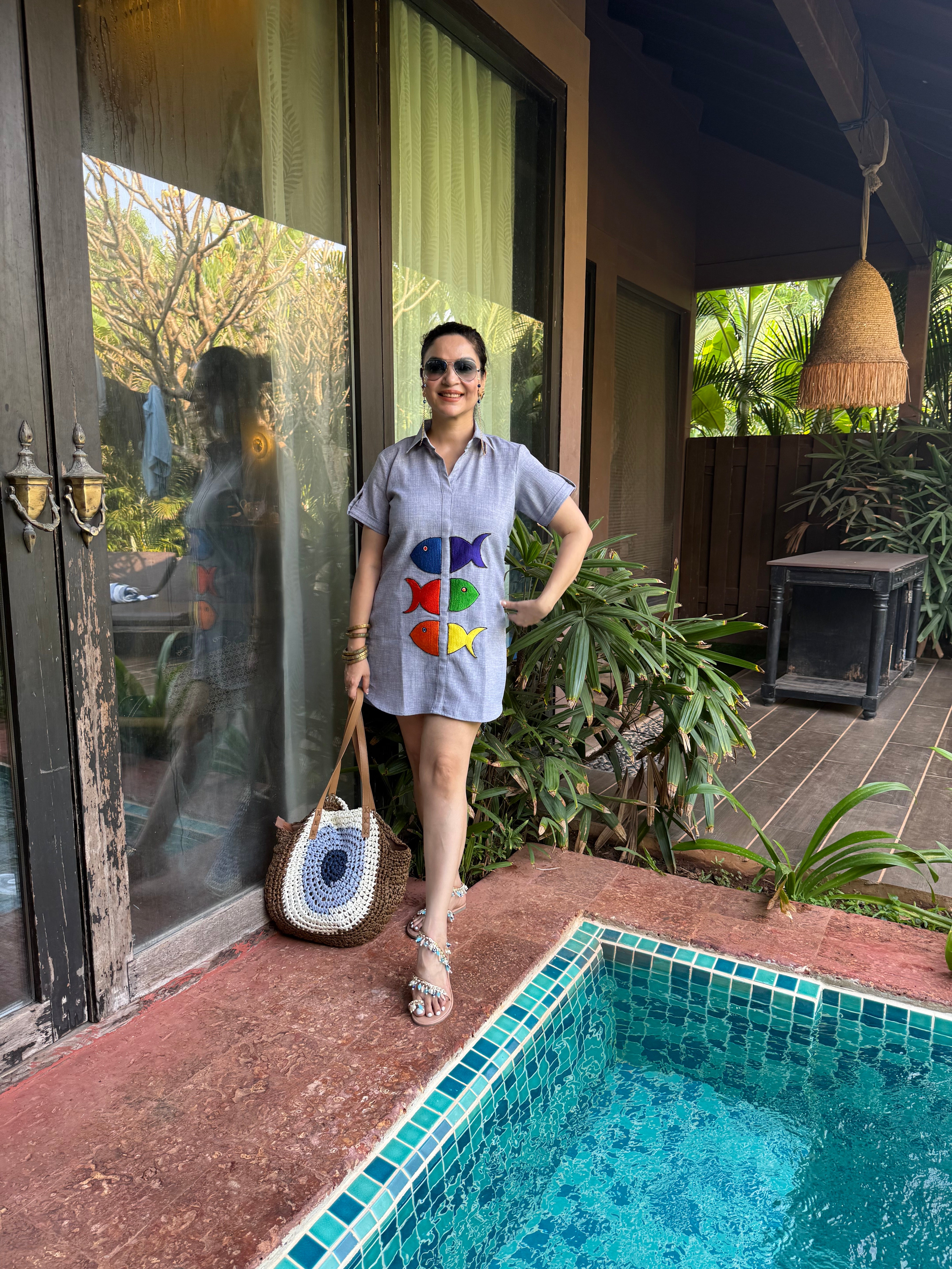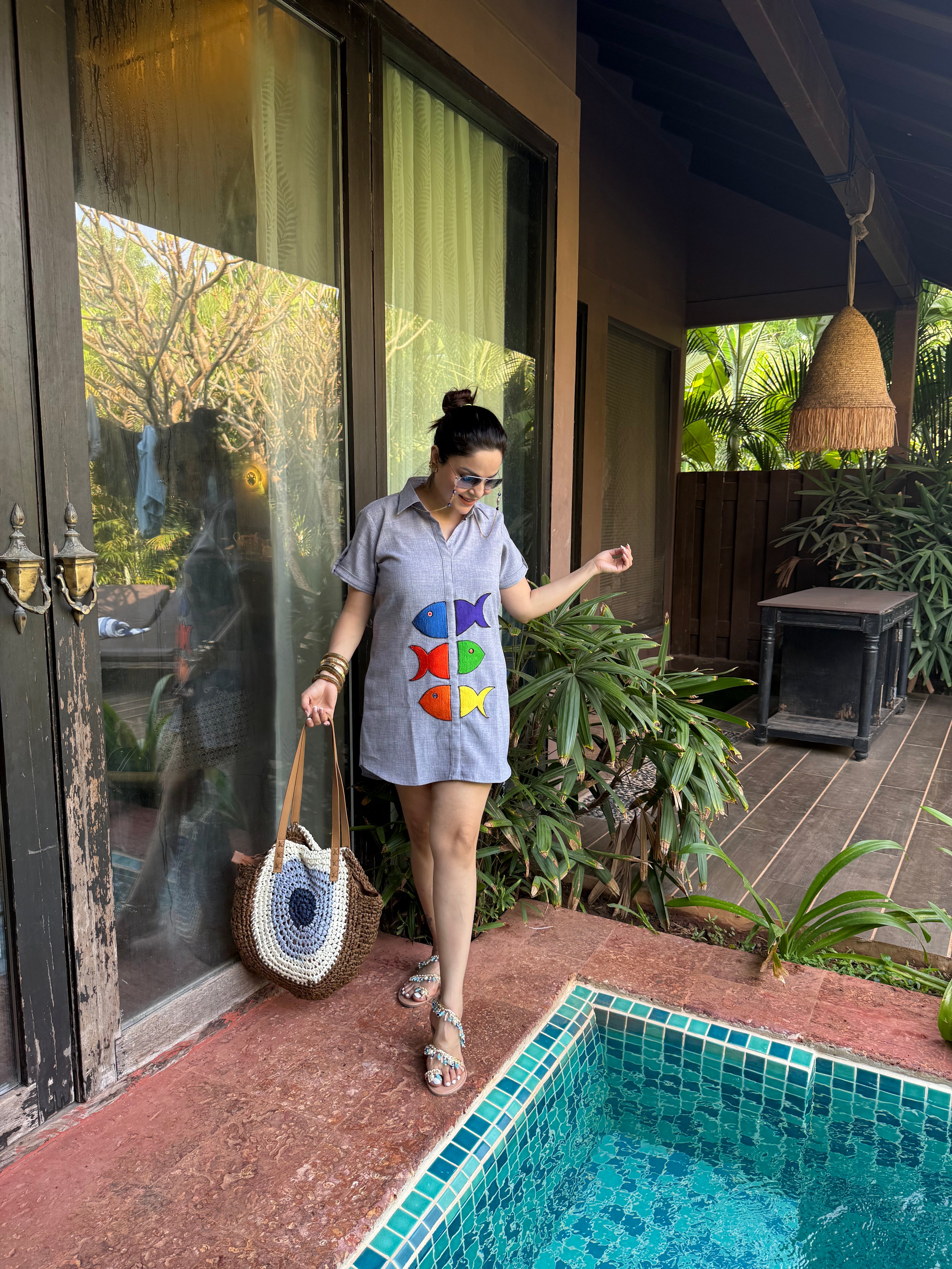 No. of components - 1 mid thigh dress , Fabric - cotton linen, Color - grey, work - machine work, Fit - According to measurements