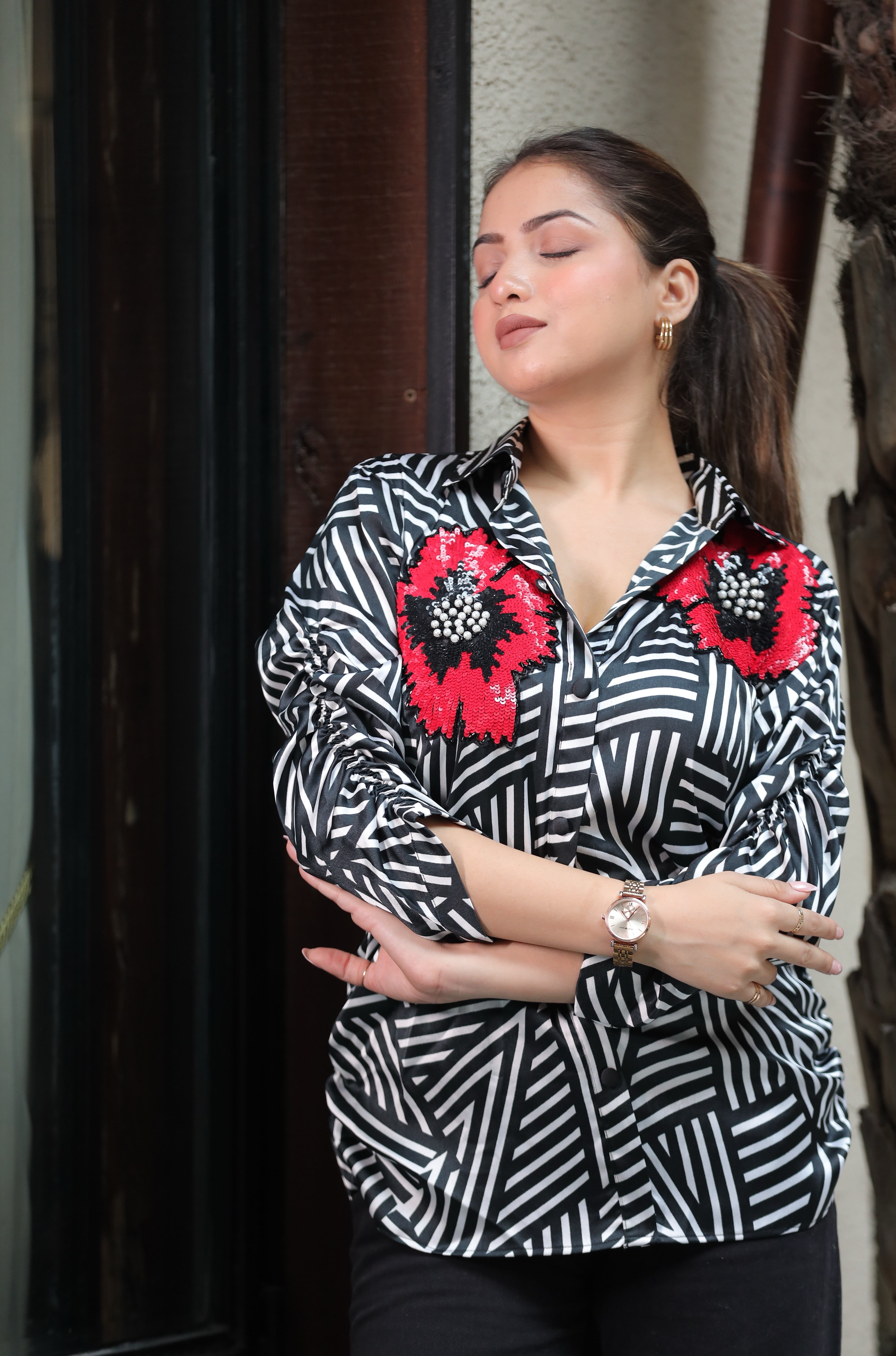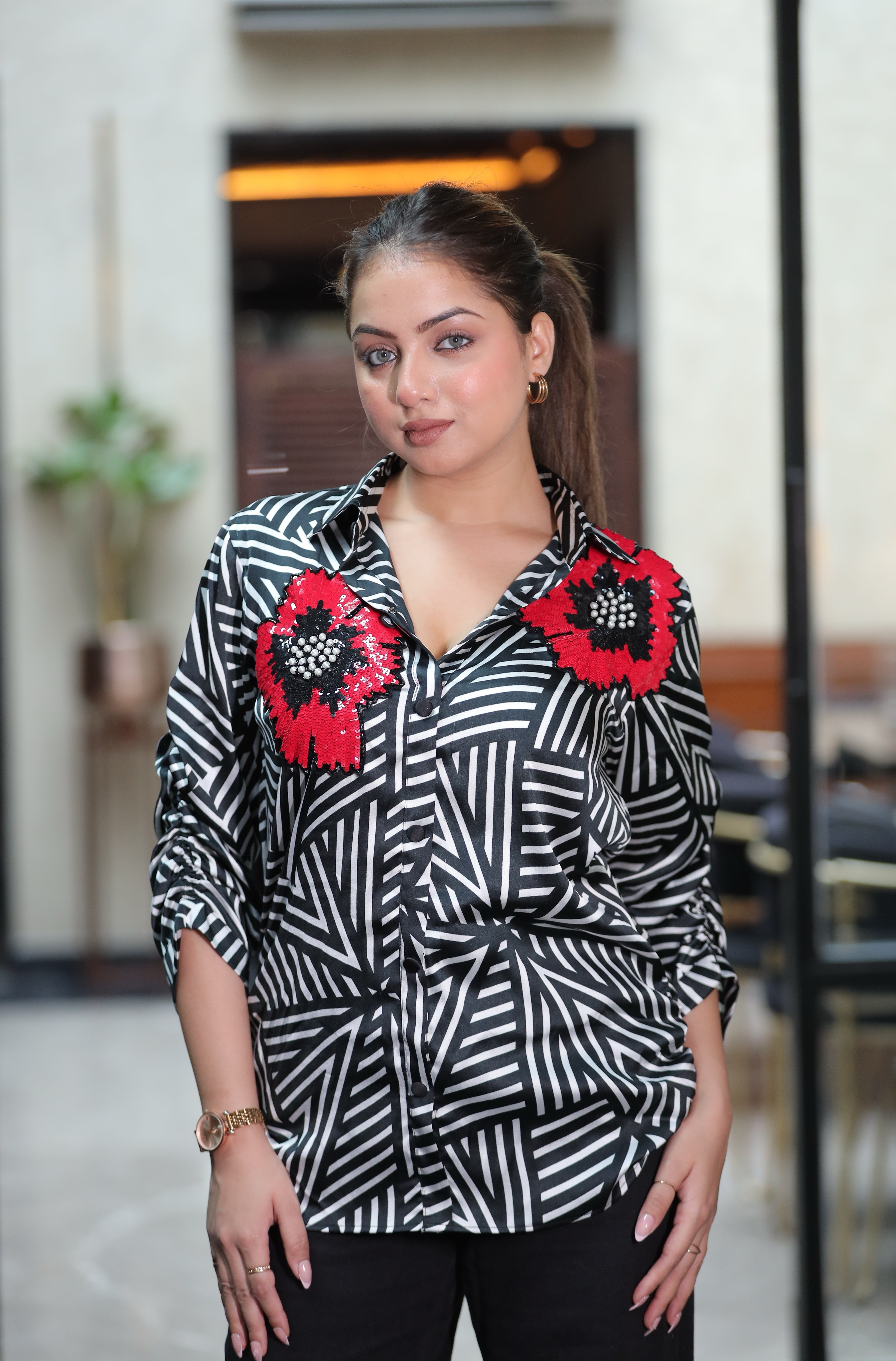 No. of components - 1 Shirt , Fabric - Satin, Color - black & white, work - Handwork, Fit - According to...