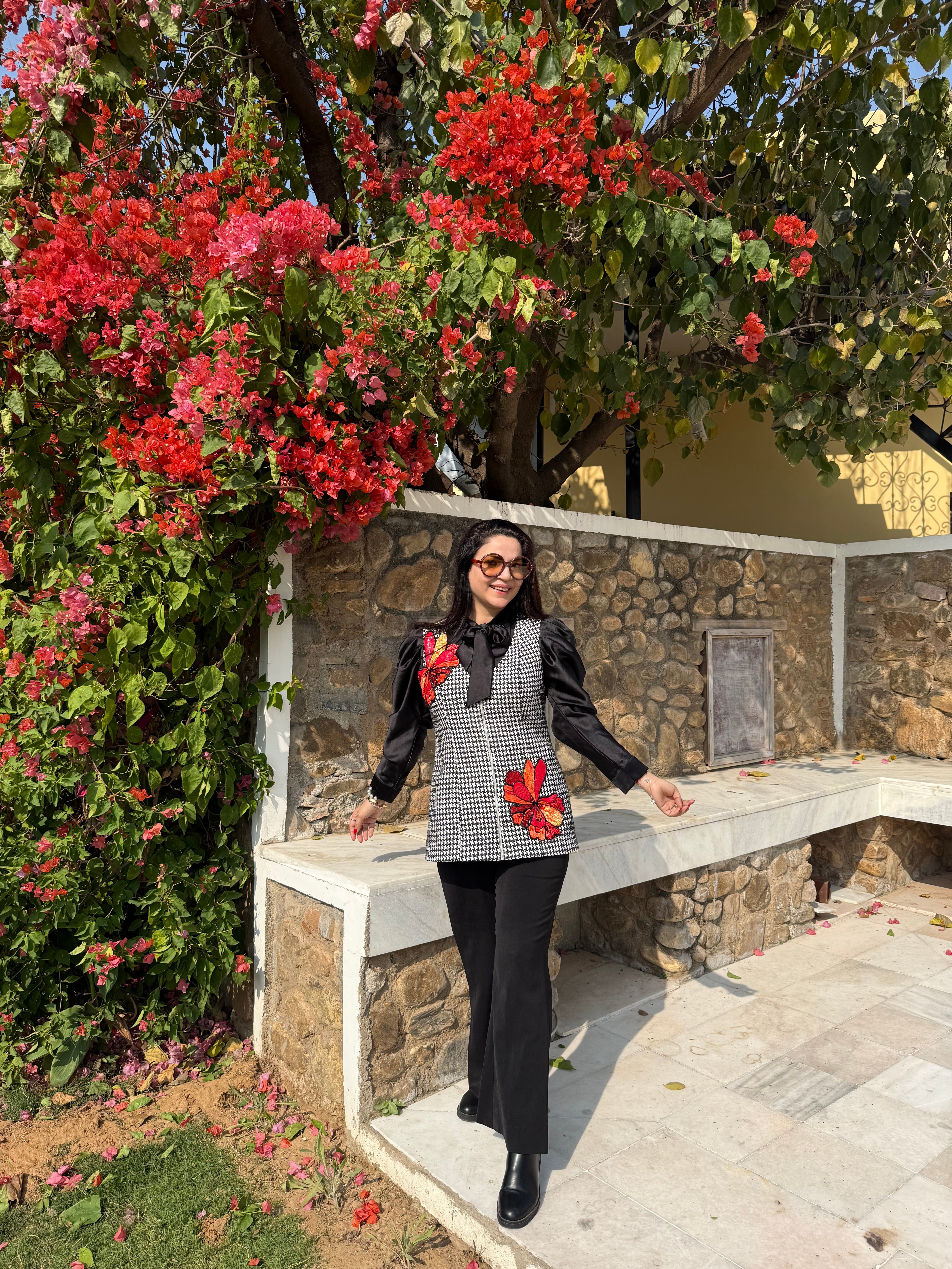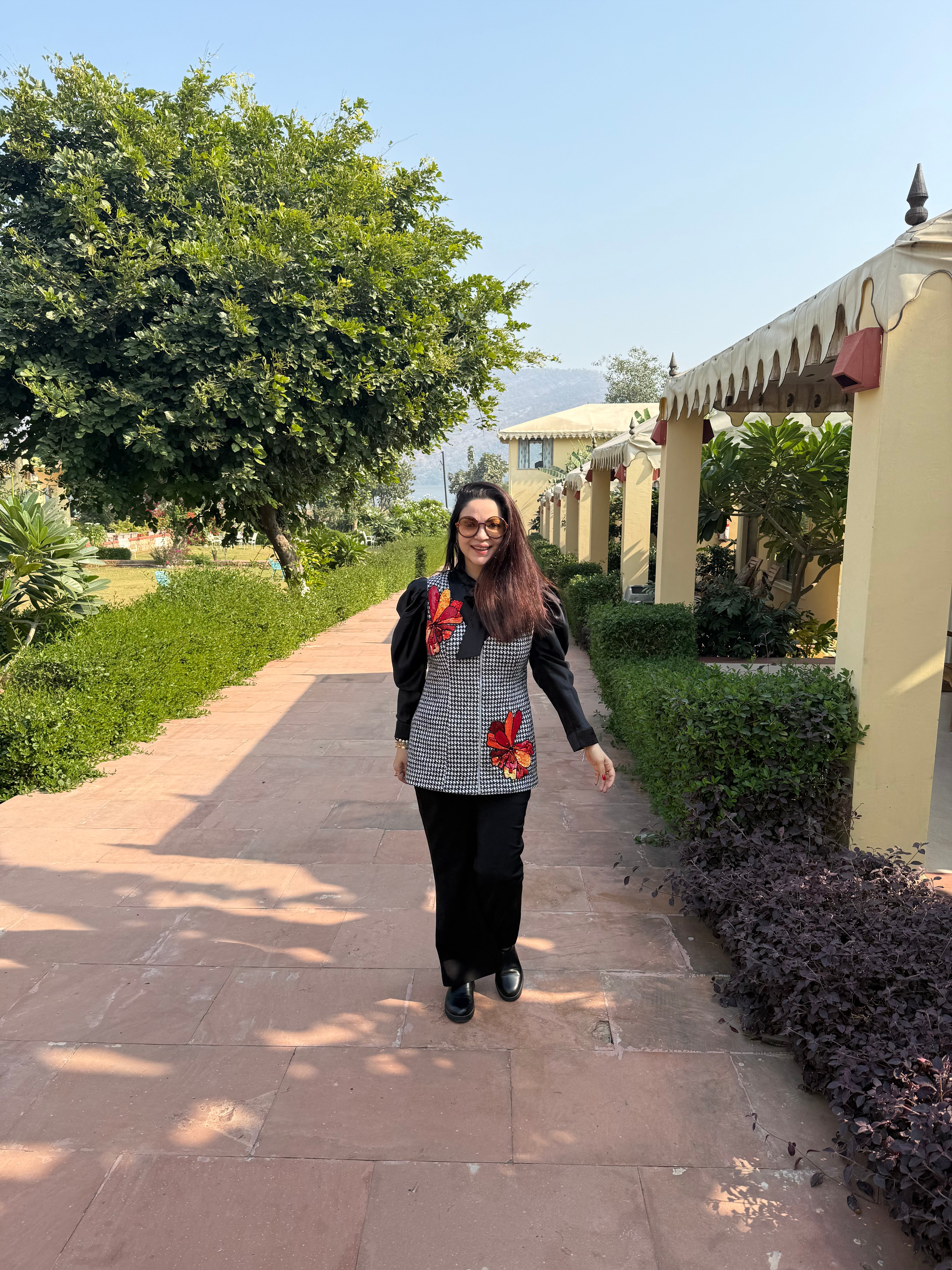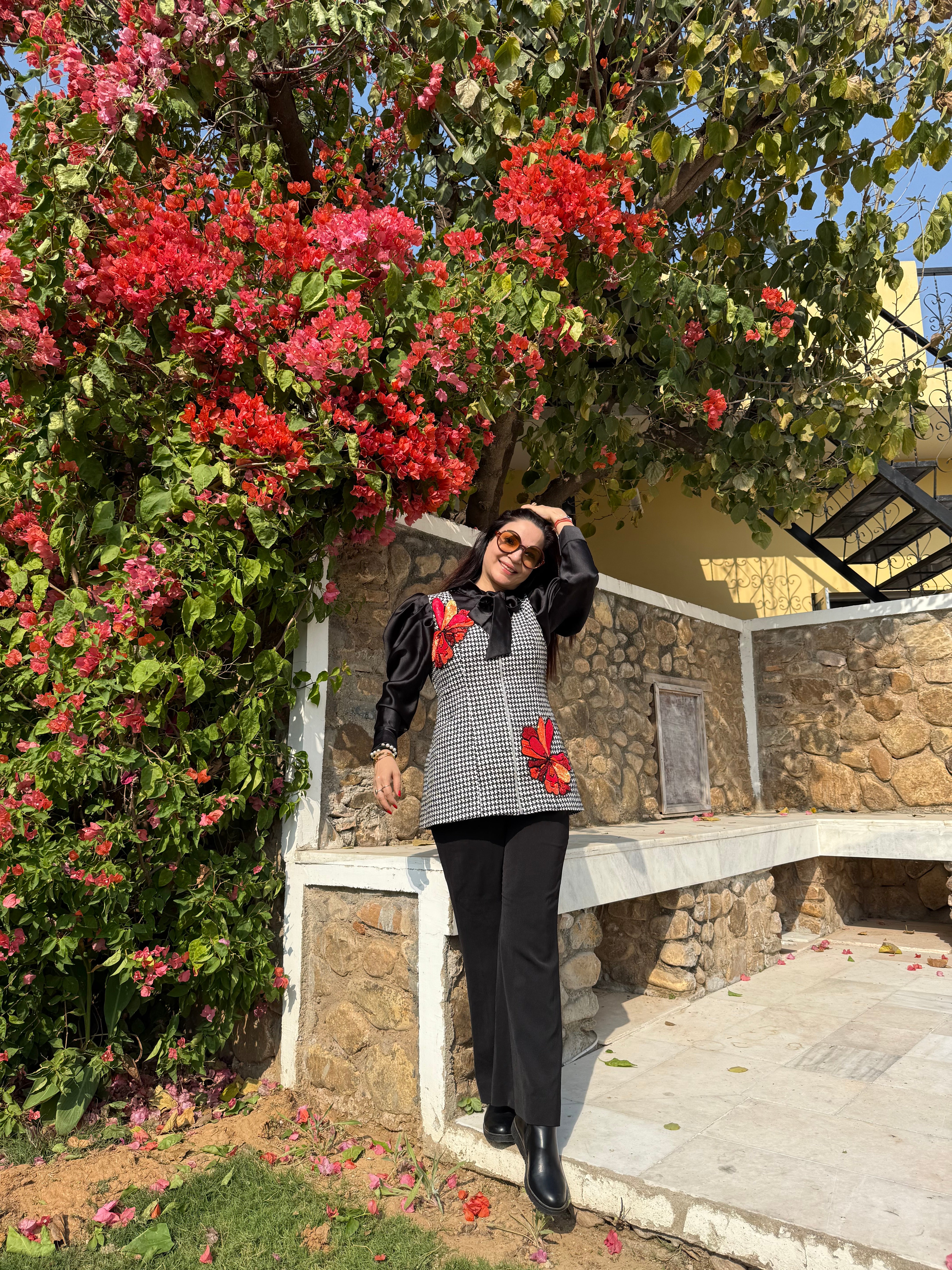 FABRIC - Tweed Blazer with attached satin and Russian lycra pants