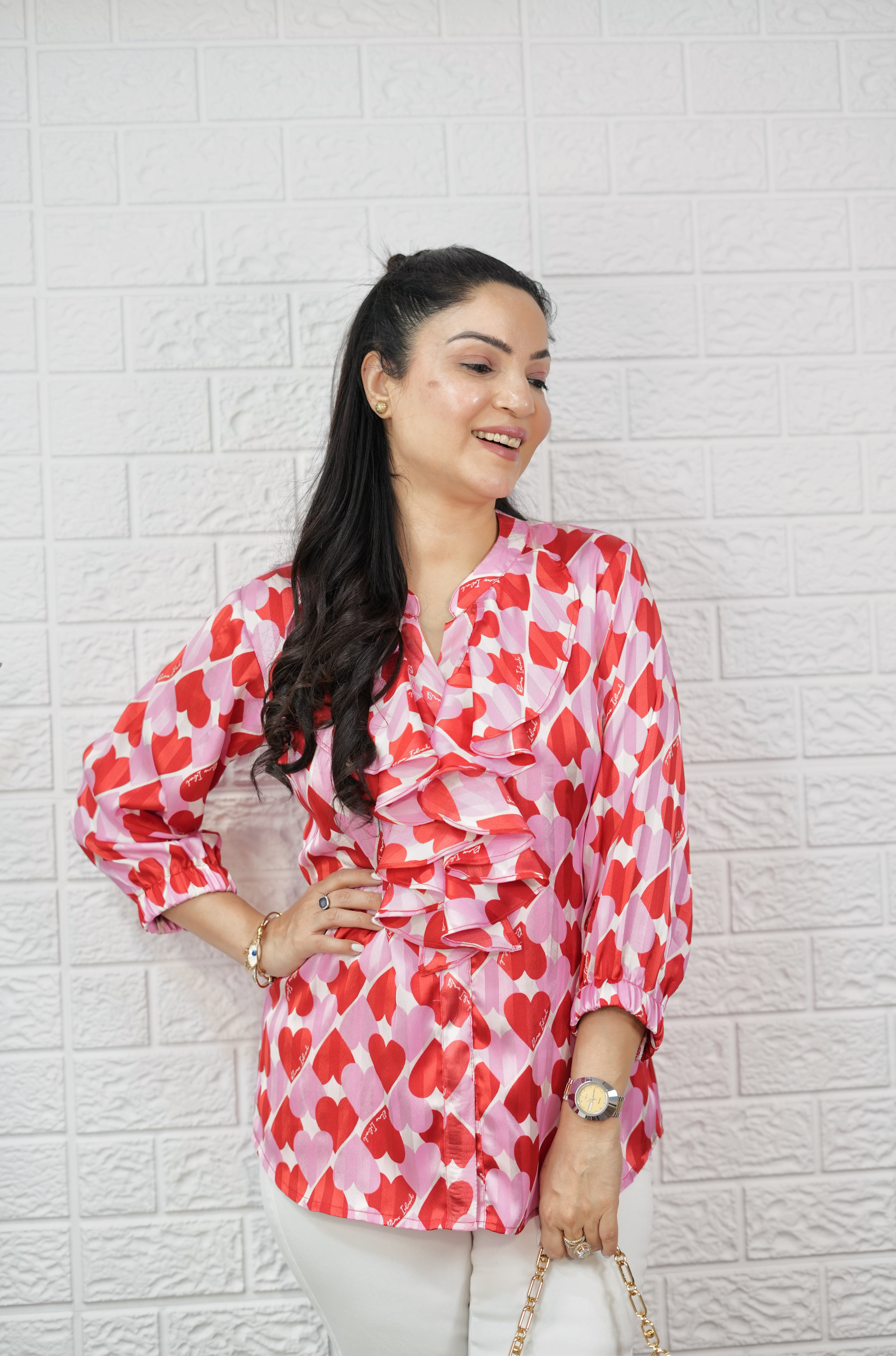 No. of components - 1 Shirt , Fabric - crepe, Color - white, pink, red, Fit - According to measurements