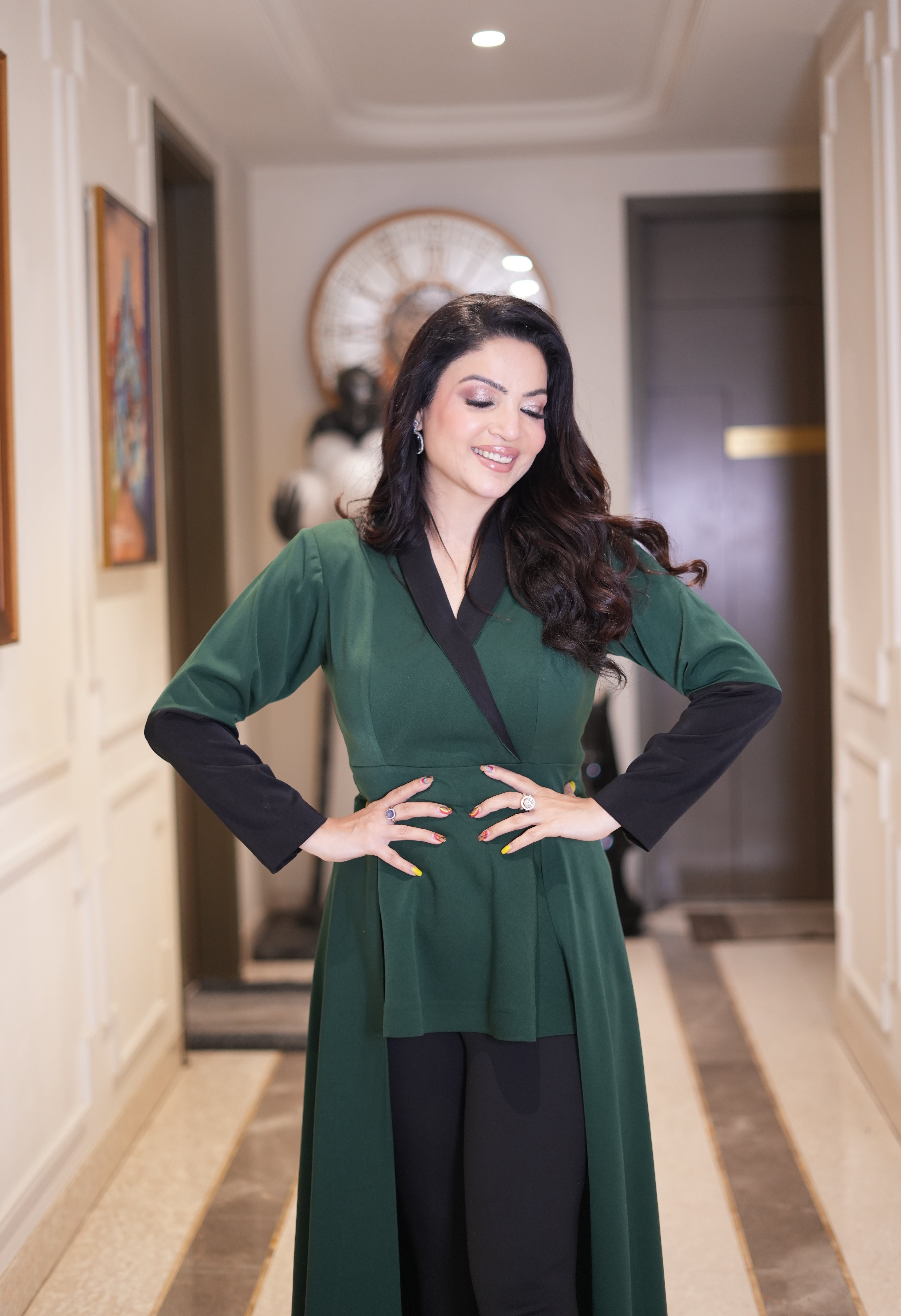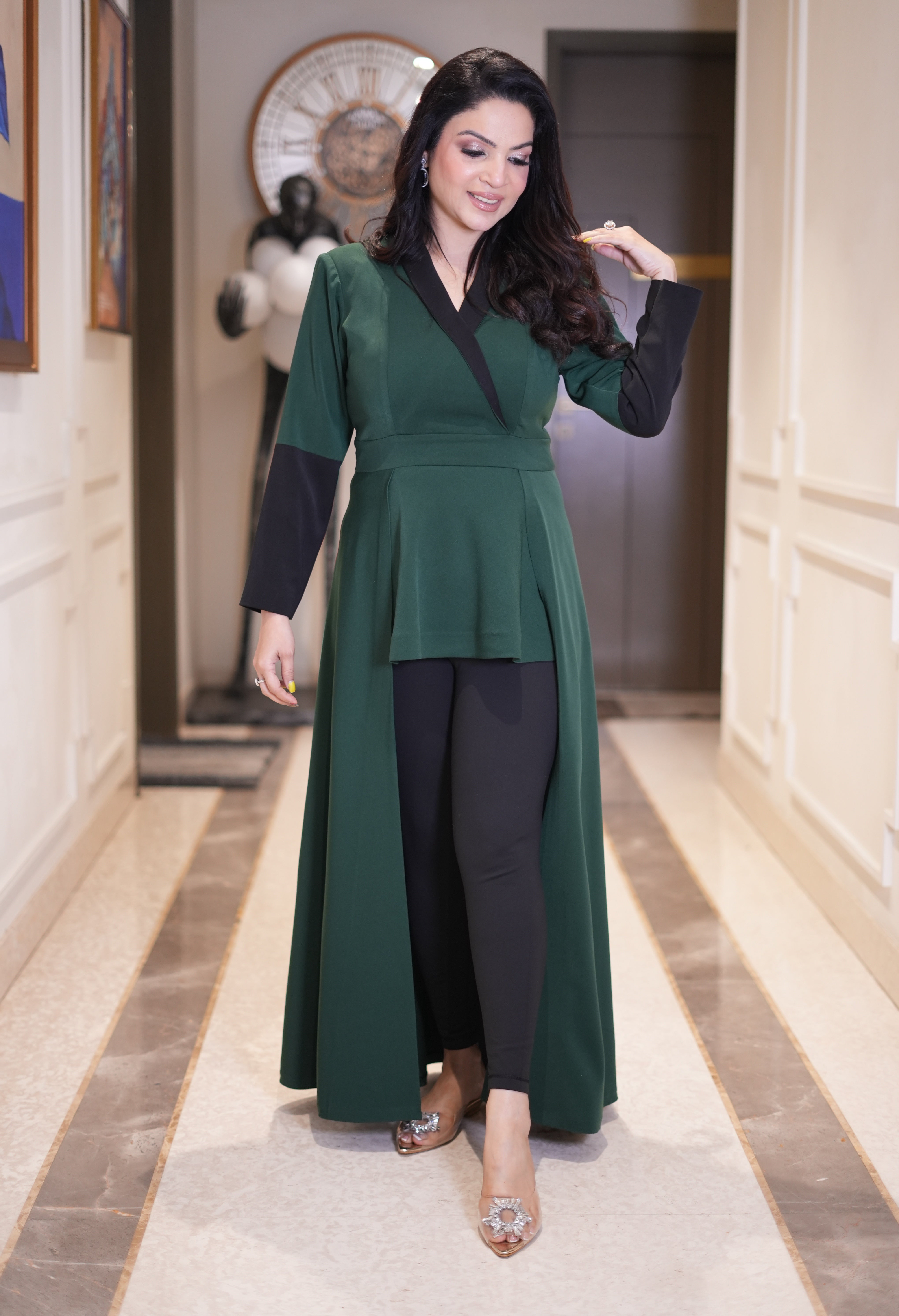No. of components - 1: high low top, Fabric - Russian lycra , Color - bottle green, Fit - According to measurements