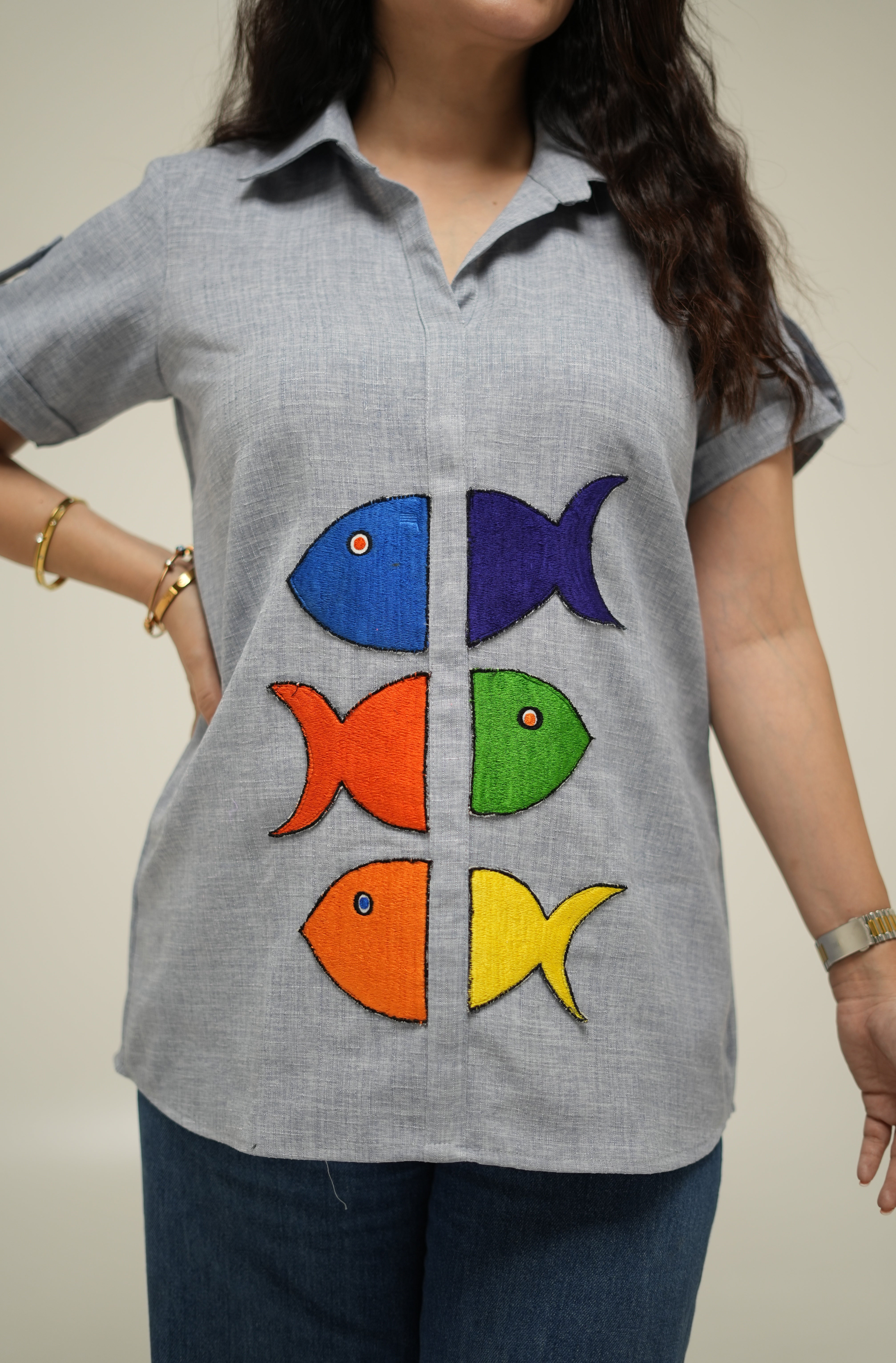 No. of components - 1 Shirt , Fabric - cotton, Color - grey, work - machine, Fit - According to measurements