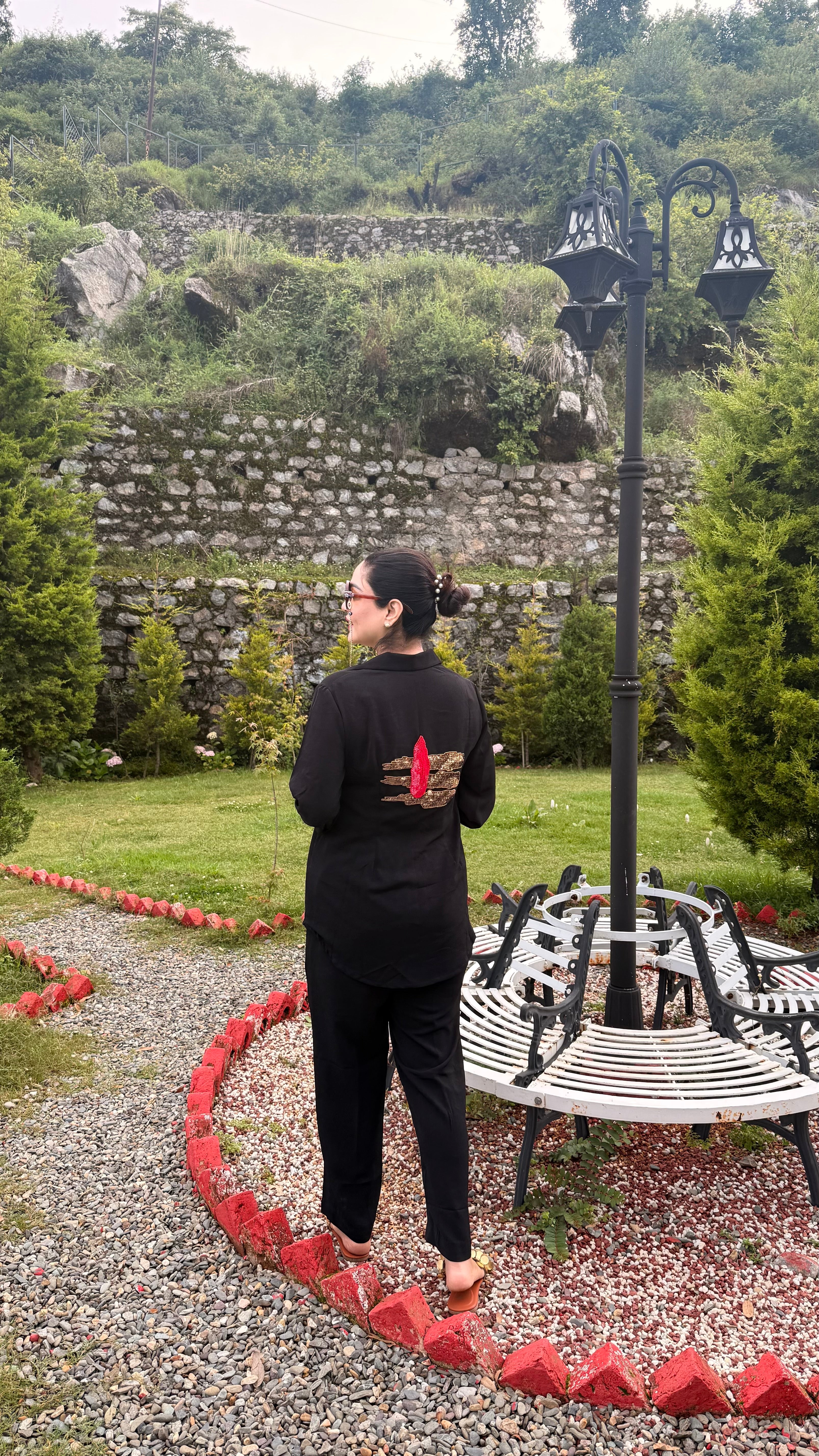 No. of components - 2: top & pants , Fabric - cotton Lycra, colour- black, work- handwork, Fit - According to measurements