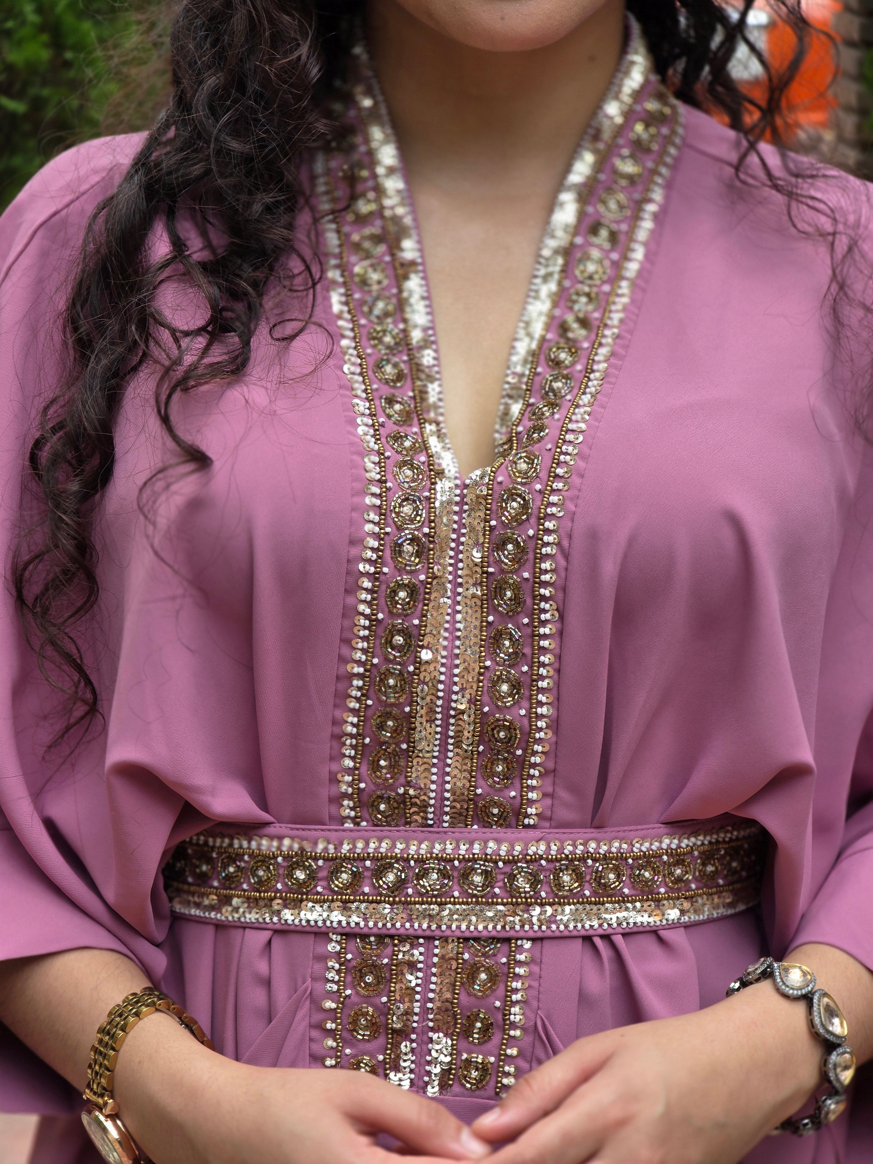 No. of components - 2: drape & belt, Fabric - satin , Colour - pink, work - handwork, Fit - According to measurements