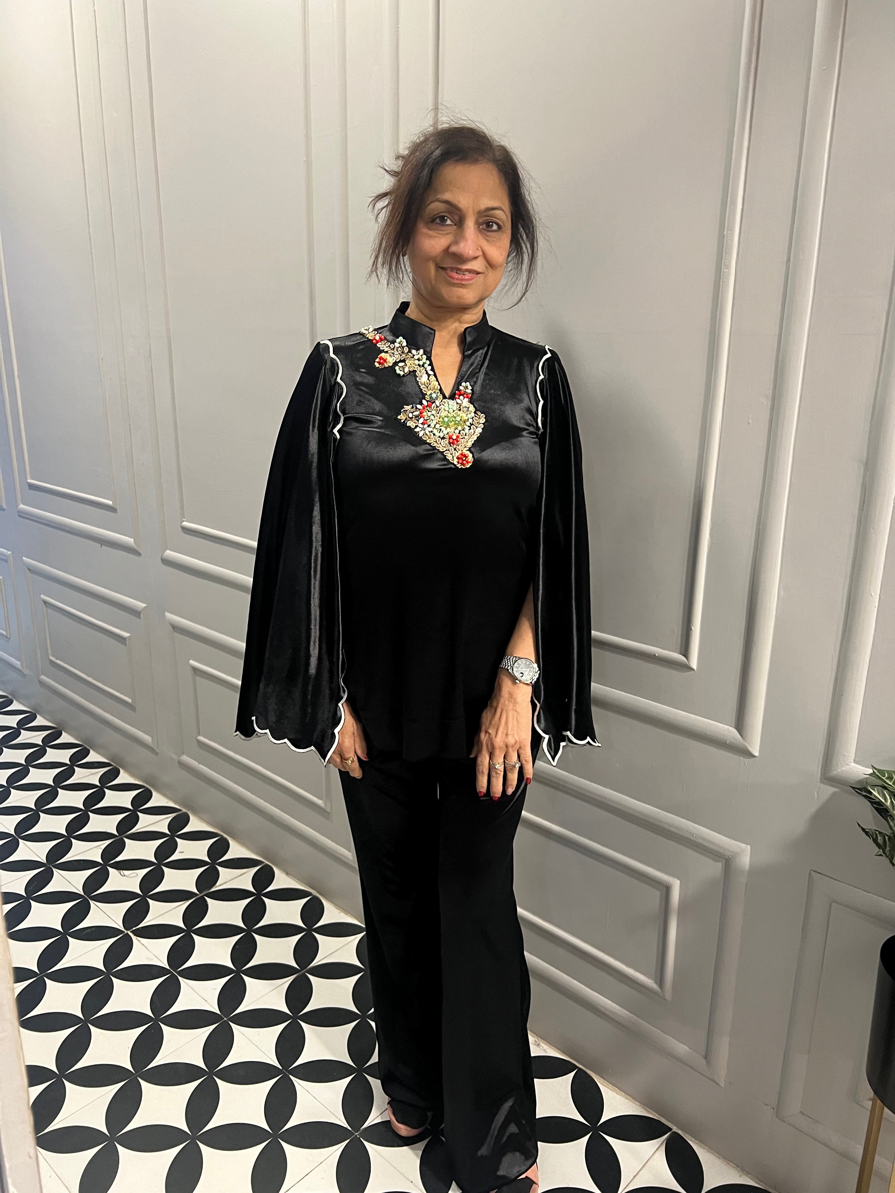 NO. OF COMPONENTS - 2COMPONENTS - Top & PantsFABRIC - Satin GeorgetteCOLOUR - BlackWORK - machine WorkFIT...