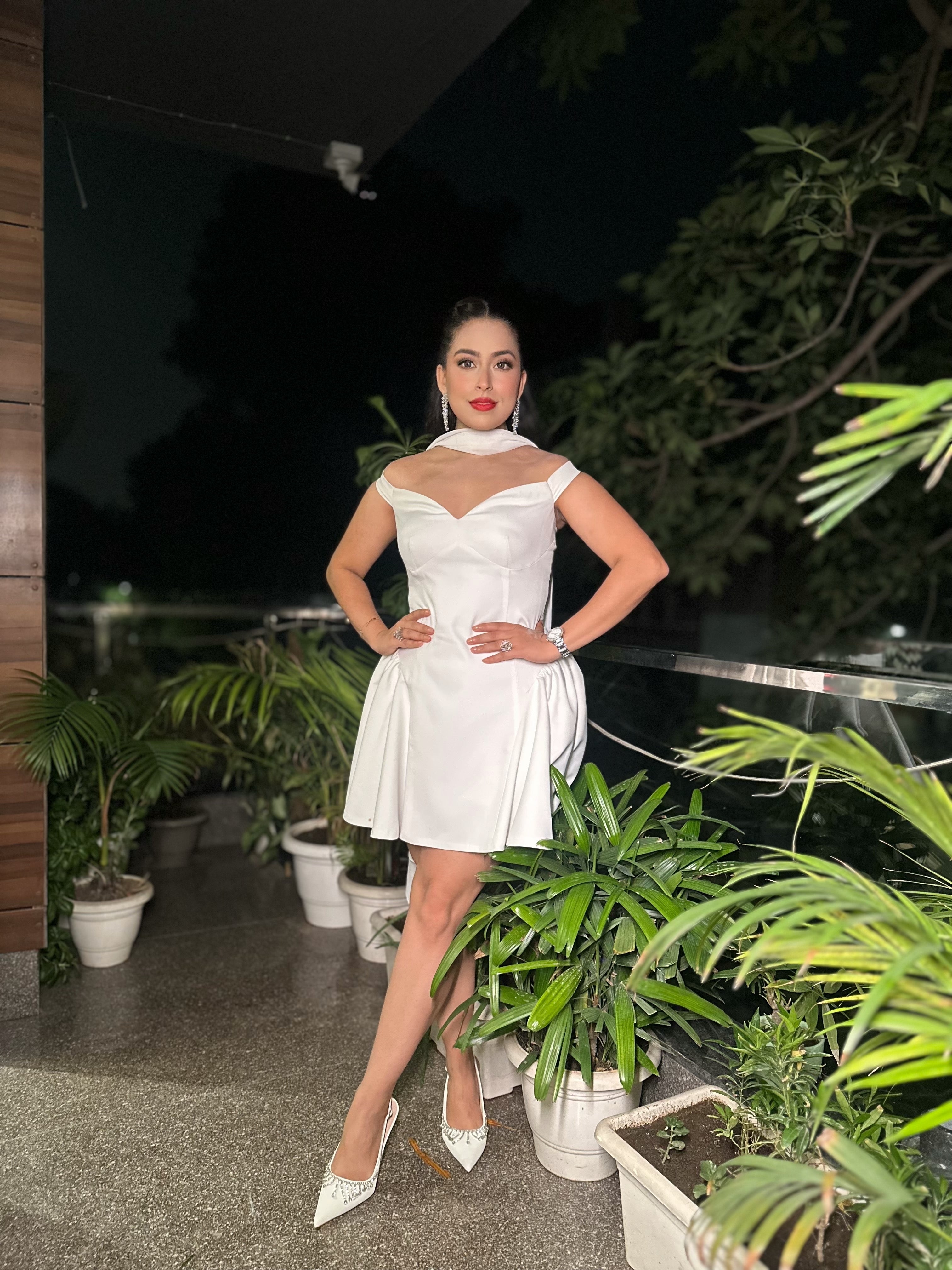 No. of components - dress & sleek dupatta , Fabric - russian lycra, colour- white, Fit - According to measurements