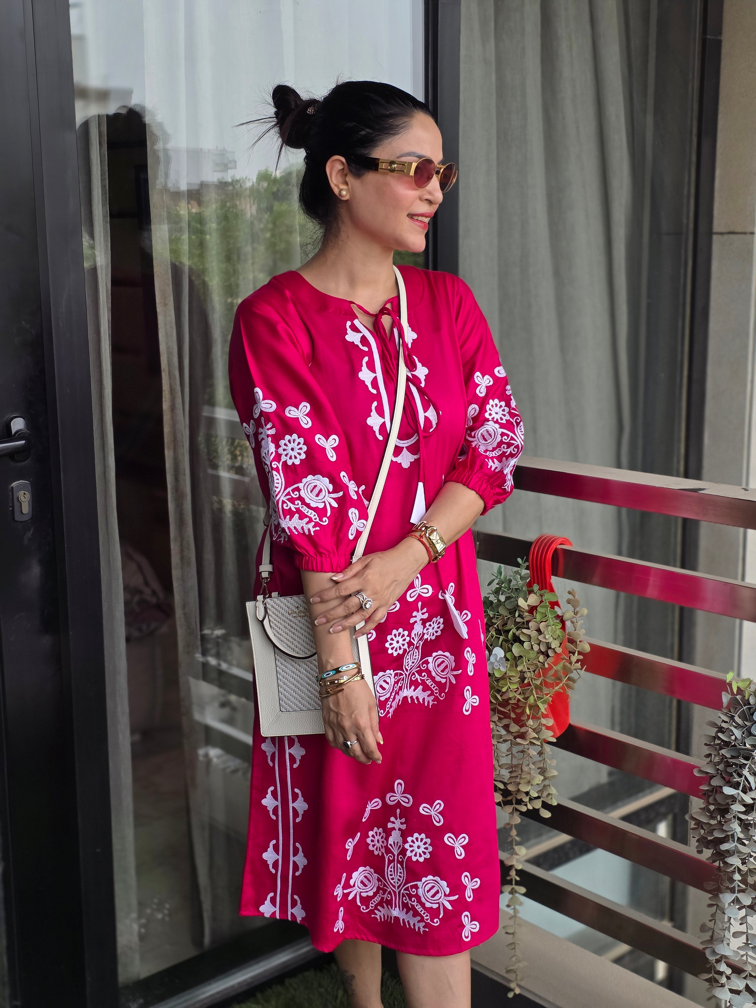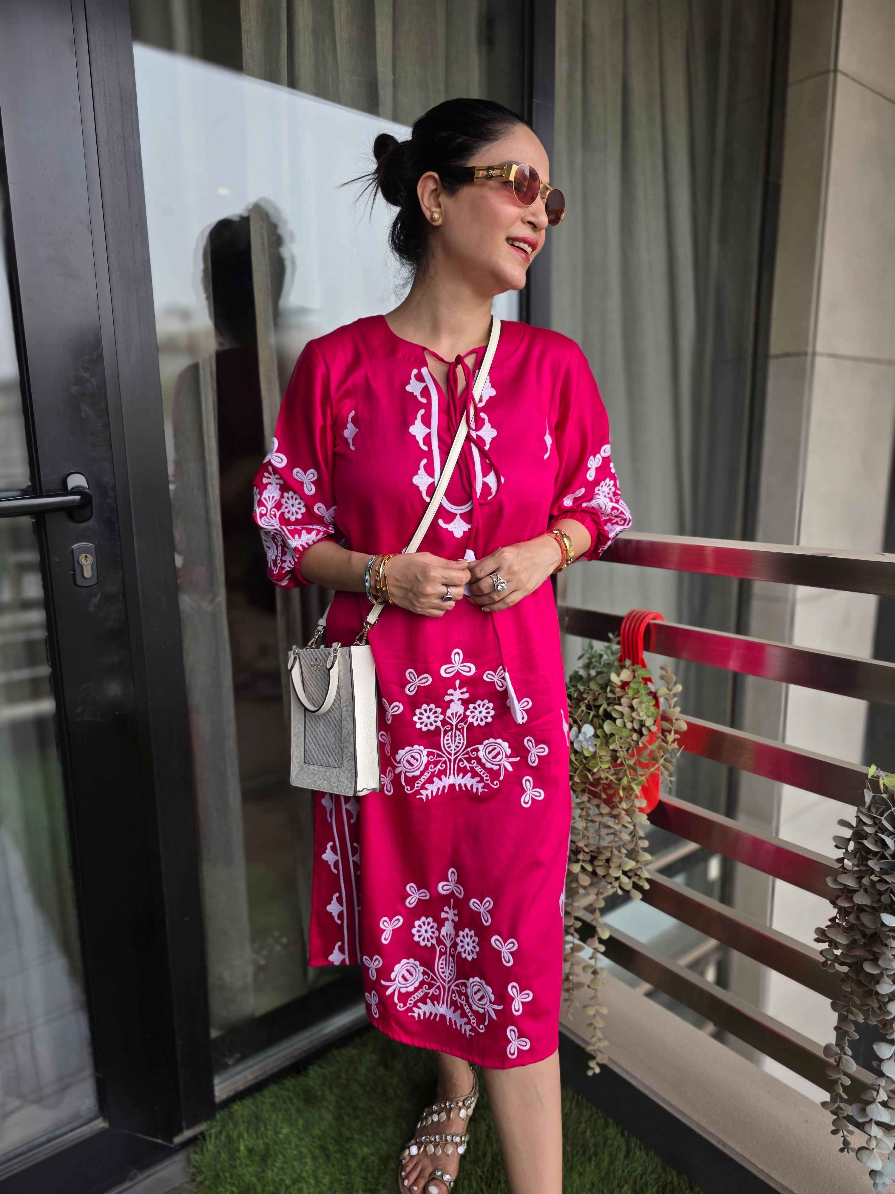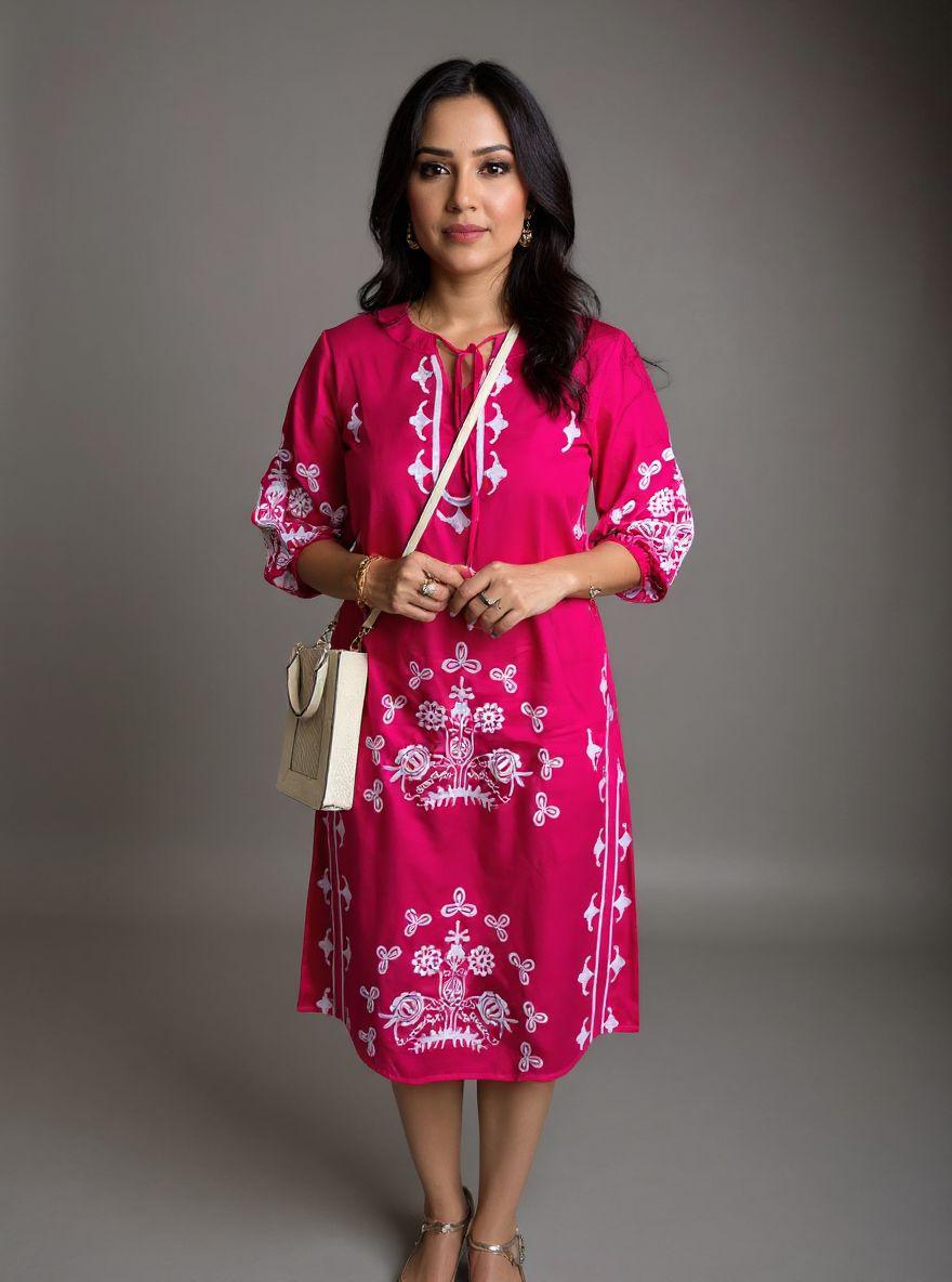 No. of components - 1 Dress , Fabric - cotton, colour- pink, work - machine work , Fit - According to measurements