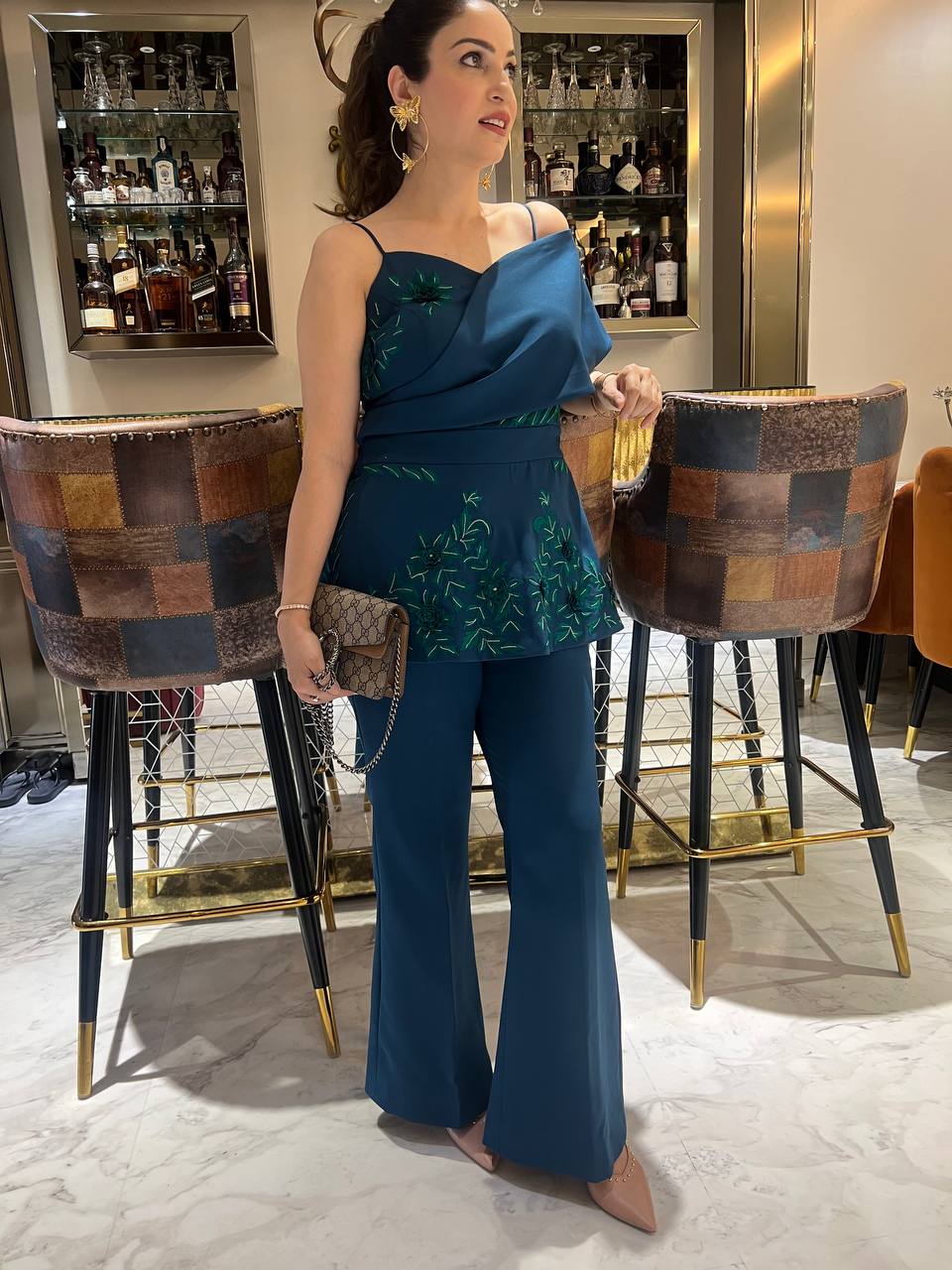 Look chic in this Sunny Threads Co-ord Set, made of lightweight and durable banana lycra. This outfit features smart flaps and intricate thread work, perfect for any occasion. Get the perfect look with this co-ord set.
