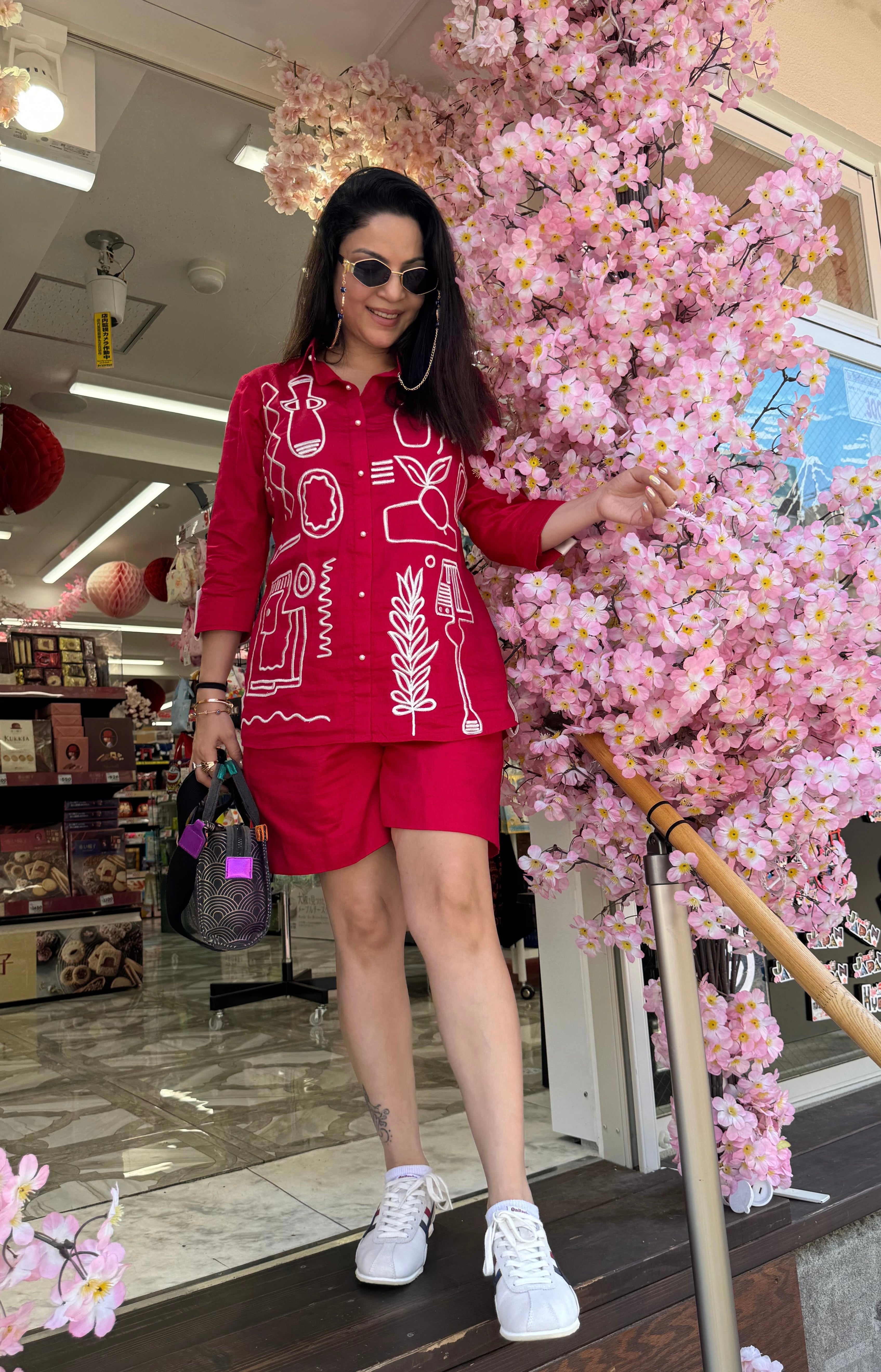 No. of components - 2 shirt & shorts, Fabric - Cotton , Color - hot pink, work - Machine work, Fit - According to measurements