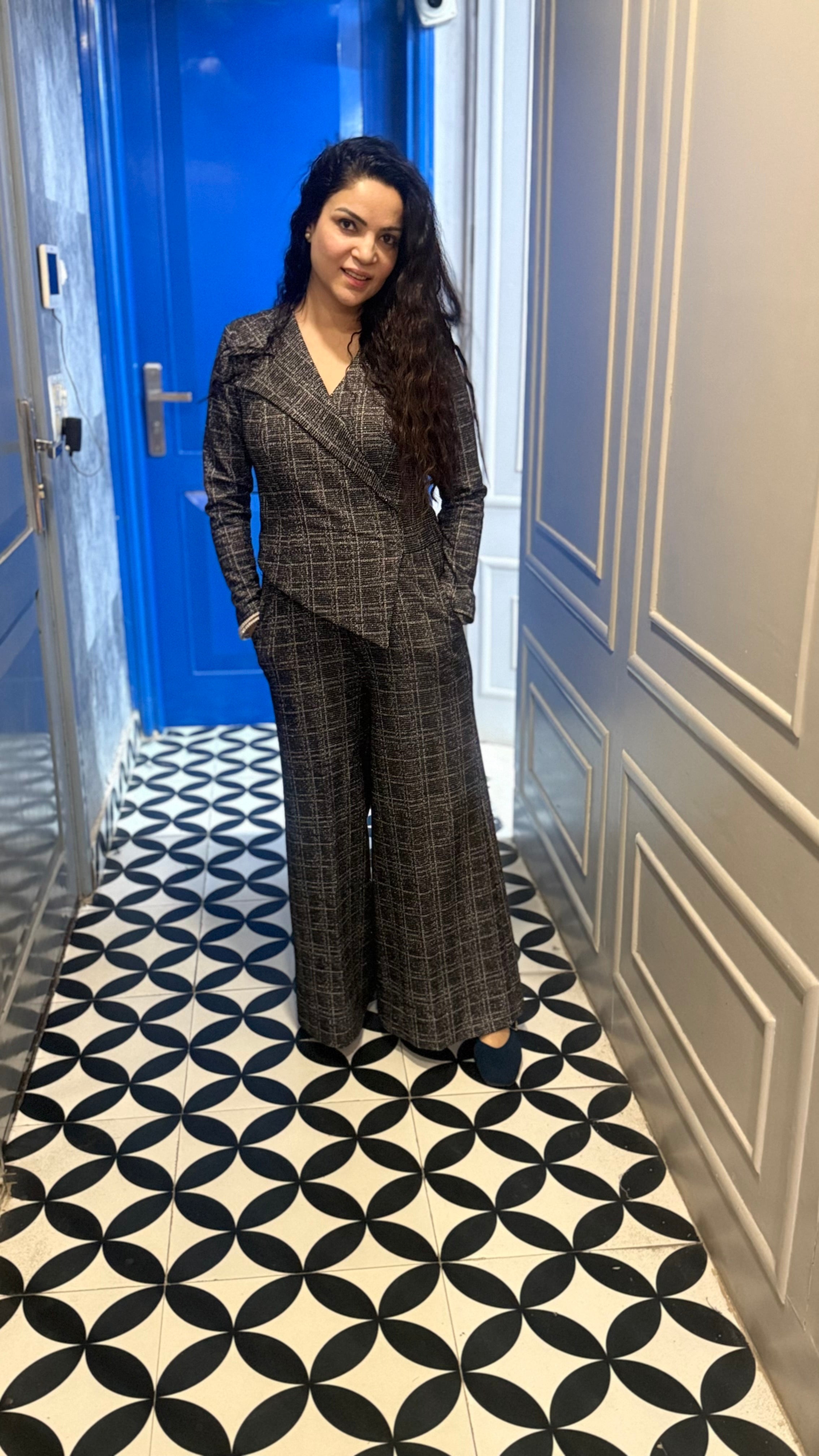 No. of components - 1 Jumpsuit , Fabric - tweed , Color - grey, Fit - According to measurements