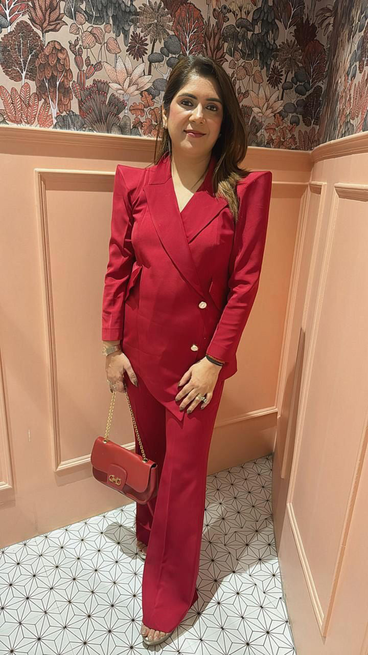 NO. OF COMPONENTS - 2COMPONENTS - Blazer & PantsFABRIC - Russian LycraCOLOUR - RedFIT - According to...