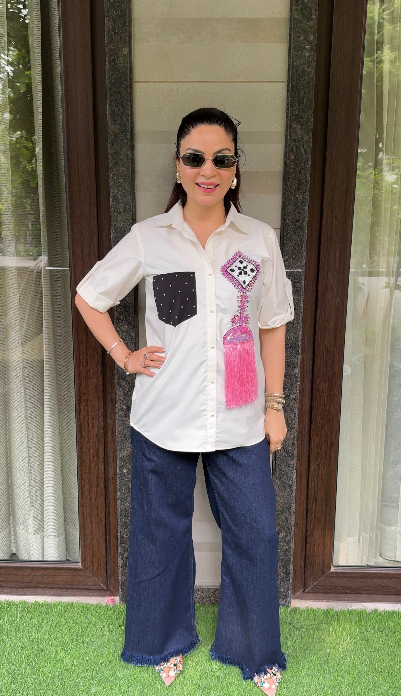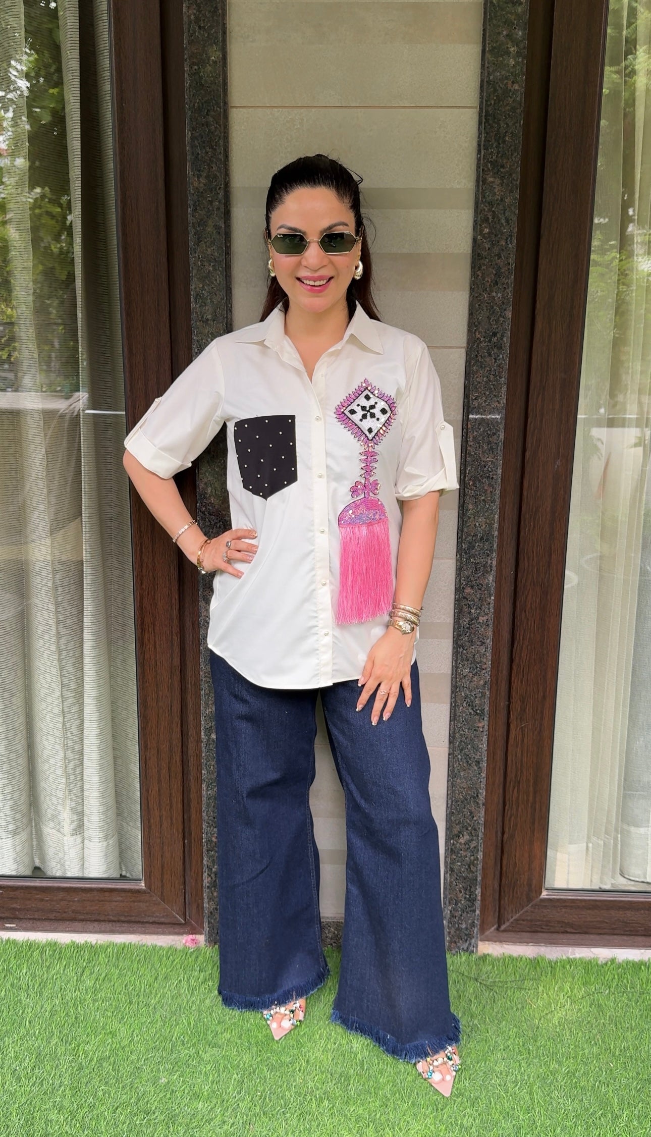 No. of components - 1 Shirt , Fabric - Cotton , Color - White, work - Handwork, Fit - According to measurements